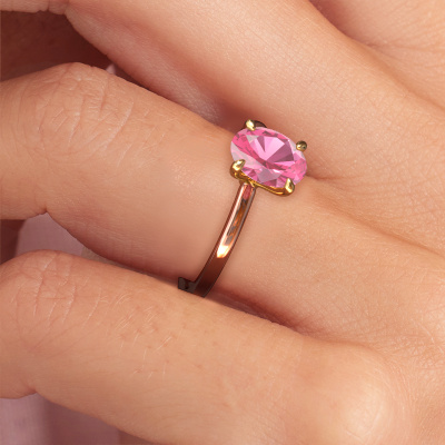 Der oben gezeigte Verlobungsring wird Crystal OVL 1 genannt. Wir nennen das einen Solitär-Ring, denn er hat einen einzelnen Edelstein. Es ist ein 14 Karat Roségold ring, mit 8x6 mm oval Pink Saphir. Das Besondere an unserem Konfigurator ist dass Sie selbst einem Schmuckstück zusammenstellen können zu einem eigenen persönlichen Schmuckstück. Dieser Solitäre Verlobungsring ist gefertigt in der Edelmetall Kombination Roségold mit Gold, aber Sie können also auch wählen aus anderen Farben. Jedes Schmuckstück ist um Ihrem Finger Glanz zu verleihen. Jeder Ring wird von unseren Goldschmieden liebevoll von Hand gefertigt. Der Solitär-Verlobungsring ist eine Sonderform des Verlobungsring. Seine offenen Krappen ermöglichen, dass Licht aus mehr Winkeln auf den Edelstein trifft. Dieser klassische Verlobungsring ist durch die hohe Positionierung des Edelsteins ein atemberaubender Blickfang. Wir schmücken diesen Solitär-Ring sorgfältig von Hand, damit Sie Ihren Anfrage mit einem einzigartigen Ring würdigen können. Die Liebe Ihres Lebens verdient nur das Beste. Da wir unsere eigenen Ringe entwerfen und liefern, können wir Ihnen einen Verlobungsring zu einem Preis anbieten, den Sie nirgendwo anders finden. Ein Ring wird auf Bestellung angefertigt, wodurch kein überschüssiges Material anfällt. So können wir Ihnen ein gutes Angebot zum besten Preis machen. Wir verstehen, dass es sich riskant anfühlt, Ihren Verlobungsring online zu kaufen. Jedoch helfen wir Ihnen gerne beim Designprozess unter Berücksichtigung Ihres Budgets.Unser Team fügt unserer Online-Kollektion täglich neue Designs hinzu. Unsere Designer und Goldschmiede arbeiten zusammen, um das beste Design zu kreieren. Wir bemühen uns, eine vielfältige Kollektion von Schmuckstücken anzubieten. Vielleicht haben Sie ein bestimmtes Design im Sinn. Eines, dass Sie irgendwo gesehen haben. Gerne geben wir Ihnen eine kostenlose Beratung. Wir machen Ihnen ein Angebot, basierend auf einem fairen Preis/Leistungsverhältnis, das Sie verblüffen wird.Um es einfacher zu machen, bieten wir eine kostenlose 30-tägige Rücksendung.