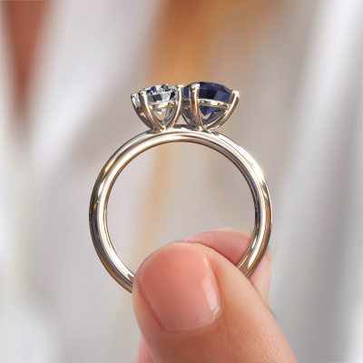 Dieser Verlobungsring aus Platin heißt Toi et Moi OVL-RND. Suchen Sie nach einem einzigartigen Platin Verlobungsring mit einem trendigen Aussehen? Dann ist dieser Ring mit Saphir das Richtige für Sie. Einfach nach Ihren Wünschen anpassen. Dieser