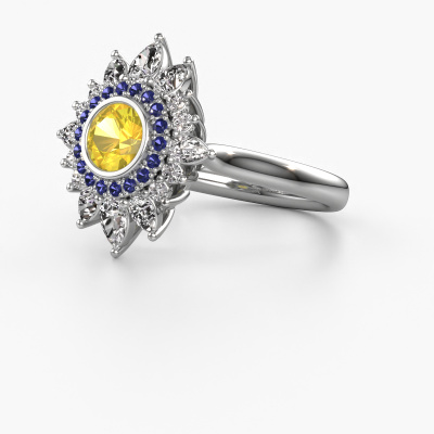 Dieser Verlobungsring aus Platin heißt Tianna und hat einen Gelb Saphir Edelstein. Ein außergewöhnlicher, Platin Vintage Ring. Einer, der die Liebe Ihres Lebens mit Sicherheit wie ein Gelb Saphir erstrahlen lässt! Das hoffen wir zu erreichen. Dieser Vintage Verlobungsring ist mit exquisiten Gelb Saphir besetzt. Welchen Edelstein Sie aus unserer Auswahl haben möchten, liegt ganz bei Ihnen. Der Edelstein wird mit großer Sorgfalt ausgewählt. Denn wir glauben, dass Ihr Verlobungsring nur mit dem schönsten Edelstein gekrönt sein darf. Sehen Sie das auch so? Unser erfahrener Juwelier entwirft Ihren Ring in unserem eigenen Studio, wo der Gelb Saphir mit großer Präzision eingefasst wird. Der Ring wird dann bearbeitet und poliert, bis er perfekt ist. Nichts als das Beste für die Liebe Ihres Lebens! Jedes Schmuckstück wird von unseren Meister-Goldschmieden in unserem eigenen Studio für Sie gefertigt.Da wir unsere eigenen Ringe entwerfen und liefern, können wir Ihnen einen Verlobungsring zu einem Preis anbieten, den Sie nirgendwo anders finden. Ein Ring wird auf Bestellung angefertigt, wodurch kein überschüssiges Material anfällt. So können wir Ihnen ein gutes Angebot zum besten Preis machen. Wir verstehen, dass es sich riskant anfühlt, Ihren Verlobungsring online zu kaufen. Jedoch helfen wir Ihnen gerne beim Designprozess unter Berücksichtigung Ihres Budgets.Unser Team fügt unserer Online-Kollektion täglich neue Designs hinzu. Unsere Designer und Goldschmiede arbeiten zusammen, um das beste Design zu kreieren. Wir bemühen uns, eine vielfältige Kollektion von Schmuckstücken anzubieten. Vielleicht haben Sie ein bestimmtes Design im Sinn. Eines, dass Sie irgendwo gesehen haben. Gerne geben wir Ihnen eine kostenlose Beratung. Wir machen Ihnen ein Angebot, basierend auf einem fairen Preis/Leistungsverhältnis, das Sie verblüffen wird.Um es einfacher zu machen, bieten wir eine kostenlose 30-tägige Rücksendung.