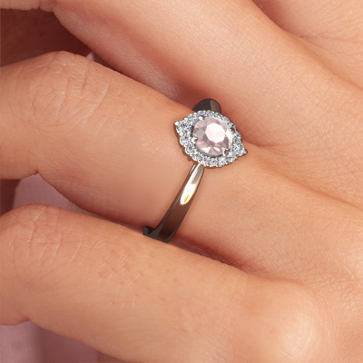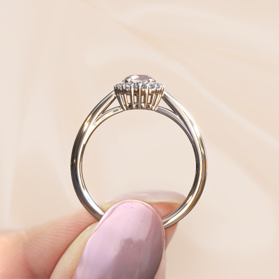 Der oben gezeigte Ring wird Tora genannt. Ein Cluster Ring mit einem zentralen Edelstein, umgeben von kleineren Steinen, wir nennen das einen Cluster Ring. Diese Version in Platin hat einen 5 mm rund Morganit Champagner als Mittelstein, umschlossen von kleineren Lab grown Diamant. Der klassische, Platin Cluster Verlobungsring zeichnet sich durch seine Form aus. Zusammen bilden die kleineren und größeren Morganit Champagner eine Blume und scheinen zu einem großen, funkelnden Edelstein zu verschmelzen. Dieser klassische Verlobungsring wird auch als Blumen- oder Rosettenring bezeichnet. Unsere erfahrenen Juweliere stellen sicher, dass die kleineren Lab grown Diamant identisch gesetzt sind, so dass es an dem Morganit Champagner keine Lichtstörungen gibt, sondern sie stattdessen eine Einheit bilden. Mit perfekter Präzision und geschickter Hand wird jeder Morganit Champagner in den Ring gesetzt. Während der Herstellung wird alles ständig überwacht, um sicherzustellen, dass das Licht einwandfrei reflektiert wird. Das alles führt zu einem einzigartigen Verlobungsring mit einem strahlenden Morganit Champagner in seiner Mitte. Ein schönes, bedeutungsvolles Geschenk, um es der Liebe Ihres Lebens zu schenken. Durch die Kombination modernster Technik mit uralter Handwerkskunst können wir alle Verlobungsringe in unserem eigenen Studio anfertigen. Jedes Schmuckstück wird auf Anfrage gefertigt. Das ist vorteilhaft, weil wir Ihnen dadurch einen Preis anbieten können, den Sie nirgendwo anders finden.Haben Sie irgendwo einen bestimmten Verlobungsring gefunden, den Sie Ihrem Liebsten schenken möchten? Sie können uns gerne sagen, was Sie wollen und wir werden Ihr Design in einen Einzigartigen klassische Verlobungsring verwandeln. Sie können die Entwicklungen Ihres Ringdesigns verfolgen, da wir 3D-Zeichnungen verwenden. Das gibt Ihnen eine realistische Vorschau, wie Ihr Design aussehen wird. Sie können auch einen Dummy vorbestellen. Ein Dummy ist ein Kunststoffring, der nach Ihrem Ringdesign gestaltet werden kann. Sie können ihn anprobieren und prüfen, ob seine Breite und Größe für Sie geeignet sind. Wir senden Ihnen gerne ein unverbindliches Angebot zu einem fairen Preis/Leistungsverhältnis. Sie werden in Anbetracht der Qualität des Rings und der Edelsteine überrascht sein.Um es einfacher zu machen, bieten wir eine kostenlose 30-tägige Rücksendung.
