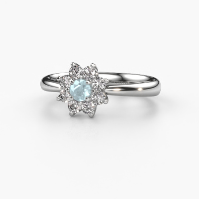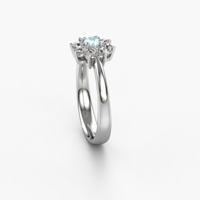 Der oben gezeigte Ring wird Camille 1 genannt. Ein Flower Ring mit einem zentralen Edelstein, umgeben von kleineren Steinen, wir nennen das einen Cluster Ring. Diese Version in Platin hat einen 3.4 mm rund Aquamarin als Mittelstein, umschlossen von kleineren Diamanten. Der traditionell, Platin Flower Verlobungsring zeichnet sich durch seine Form aus. Zusammen bilden die kleineren und größeren Aquamarin eine Blume und scheinen zu einem großen, funkelnden Edelstein zu verschmelzen. Dieser traditionell Verlobungsring wird auch als Blumen- oder Rosettenring bezeichnet. Unsere erfahrenen Juweliere stellen sicher, dass die kleineren Diamanten identisch gesetzt sind, so dass es an dem Aquamarin keine Lichtstörungen gibt, sondern sie stattdessen eine Einheit bilden. Mit perfekter Präzision und geschickter Hand wird jeder Aquamarin in den Ring gesetzt. Während der Herstellung wird alles ständig überwacht, um sicherzustellen, dass das Licht einwandfrei reflektiert wird. Das alles führt zu einem einzigartigen Verlobungsring mit einem strahlenden Aquamarins in seiner Mitte. Ein schönes, bedeutungsvolles Geschenk, um es der Liebe Ihres Lebens zu schenken. Mit unserer modernen Technik können wir Schmuckstücke von höchster Qualität mit größter Sorgfalt für Sie entwerfen und anpassen. Unsere Verlobungsringe sind immer um 30 Prozent günstiger als bei anderen Juwelieren. Wir fertigen Verlobungsringe auf Bestellung, also müssen wir keine großen Lager unterhalten. Wenn Sie ein bestimmtes Budget haben, beraten wir Sie gerne entsprechend.Unser Team fügt unserer Online-Kollektion täglich neue Designs hinzu. Unsere Designer und Goldschmiede arbeiten zusammen, um das beste Design zu kreieren. Wir bemühen uns, eine vielfältige Kollektion von Schmuckstücken anzubieten. Vielleicht haben Sie ein bestimmtes Design im Sinn. Eines, dass Sie irgendwo gesehen haben. Gerne geben wir Ihnen eine kostenlose Beratung. Wir machen Ihnen ein Angebot, basierend auf einem fairen Preis/Leistungsverhältnis, das Sie verblüffen wird.Um es einfacher zu machen, bieten wir eine kostenlose 30-tägige Rücksendung.