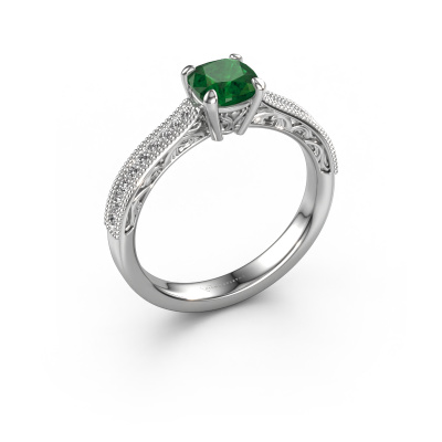 Dieser Verlobungsring aus Platin heißt Shonta CUS. Dieser filigrane Platin Verlobungsring mit 5.5 mm Smaragd ist ein wahres Kunstwerk! Ein wunderschön geschmücktes Design aus komplizierten Drähten. Mit Hingabe, Geduld und äußerster Präzision werden unsere erfahrenen Juweliere einen Ring nur für Sie entwerfen. Die Verzierungen mit kleinen Drähten werden von Hand in Perfektion gefertigt. Das ist ein langwieriger Prozess, der Schweißen, Werkzeug und Polieren umfasst, bis der erfahrene Juwelier mit dem Ergebnis zufrieden ist: Ein perfekter, auffälliger Ring, der ihn mit Freude zum Strahlen bringt. Deshalb ist der Vintage, filigrane Verlobungsring ein außergewöhnliches Geschenk, um die Liebe Ihres Lebens zu verwöhnen. Ein handgemachter, einzigartiger und personalisierter Ring, den man jemandem in diesem besonderen Moment geben kann, wenn man die eine Frage stellt. Ist das nicht wunderbar? Jedes Schmuckstück ist um Ihrem Finger Glanz zu verleihen. Jeder Ring wird von unseren Goldschmieden liebevoll von Hand gefertigt.Nachdem Sie Ihre Bestellung aufgegeben haben, beginnen unsere Goldschmiede mit dem kreativen Prozess der Herstellung Ihres Shonta CUS Verlobungsring. Wir haben keine Lager. Das ist vorteilhaft, da diese Kosten nicht an Sie weitergegeben werden. Daher sind wir in der Lage, Schmuck zu außergewöhnlich niedrigen Preisen anzubieten.Unsere Designer und Goldschmiede arbeiten jeden Tag zusammen und versuchen, neue Schmuckstücke zu kreieren. Vielleicht haben Sie irgendwo einen schönen, Vintage Verlobungsring gefunden, nach dem Ihr einzigartiger Ring gestaltet werden kann. Setzen Sie sich mit uns in Verbindung. Wir machen Ihnen ein Angebot, basierend auf einem fairen Preis/Leistungsverhältnis, das Sie begeistern wird.Um es einfacher zu machen, bieten wir eine kostenlose 30-tägige Rücksendung.