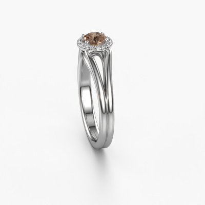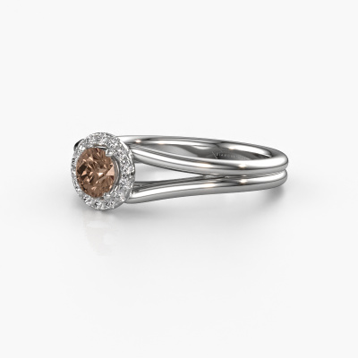 Der oben gezeigte Verlobungsring wird Verla rnd 1 genannt. Es ist ein Halo Ring, da er einen zentralen Edelstein und ein Band mit Pavé-Fassung hat. Der Platin ring ist mit einem 0.40 crt rund Braun Diamant-Mittelstein besetzt und um ihn herum eine Pavé-Fassung mit Diamanten. Was diesen klassische, Platin Halo Ring besonders macht, sind die kleineren Steine, die den zentralen Stein umschließen. Dieser wunderschöne Verlobungsring wird als Halo Ring bezeichnet, da die kleineren Edelsteine dem zentralen Stein einen Lichthof geben. Damit die kleineren Steine den Mittelstein verstärken, müssen sie so platziert werden, dass keine Lichteinflüsse auftreten. Und hier kommen unsere erfahrenen Goldschmiede ins Spiel. Jeder einzelne Stein wird sorgfältig von Hand in den Ring gesetzt. Während der Herstellung wird der Lichteinfall ständig überprüft. So können wir sicherstellen, dass der spezielle Lichtkranz noch sichtbar ist. Am Ende erhalten Sie einen einzigartigen Verlobungsring mit einem Braune Diamanten Ihrer Wahl in der Mitte. Sie können sich die Wirkung eines solchen Ringes vorstellen, wenn Sie ihn an ihrem besonderen Tag für sie zum Leuchten bringen. Durch die Kombination modernster Technik mit uralter Handwerkskunst können wir alle Verlobungsringe in unserem eigenen Studio anfertigen. Jedes Schmuckstück wird auf Anfrage gefertigt. Das ist vorteilhaft, weil wir Ihnen dadurch einen Preis anbieten können, den Sie nirgendwo anders finden.Unser Team fügt unserer Online-Kollektion täglich neue Designs hinzu. Unsere Designer und Goldschmiede arbeiten zusammen, um das beste Design zu kreieren. Wir bemühen uns, eine vielfältige Kollektion von Schmuckstücken anzubieten. Vielleicht haben Sie ein bestimmtes Design im Sinn. Eines, dass Sie irgendwo gesehen haben. Gerne geben wir Ihnen eine kostenlose Beratung. Wir machen Ihnen ein Angebot, basierend auf einem fairen Preis/Leistungsverhältnis, das Sie verblüffen wird.Um es einfacher zu machen, bieten wir eine kostenlose 30-tägige Rücksendung.