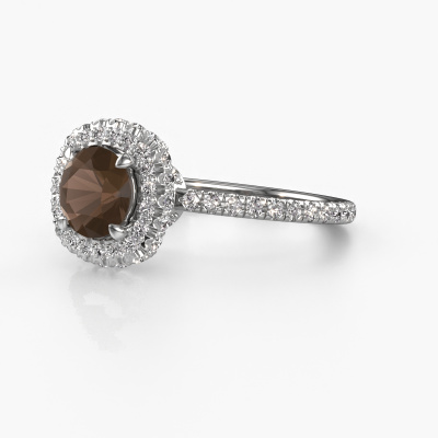 Der oben gezeigte Verlobungsring wird Talitha RND genannt. Es ist ein Halo Ring, da er einen zentralen Edelstein und ein Band mit Pavé-Fassung hat. Der Platin ring ist mit einem 6.5 mm rund Rauchquarz-Mittelstein besetzt und um ihn herum eine Pavé-Fassung mit Lab grown Diamant. Was diesen exklusive, Platin Halo Ring besonders macht, sind die kleineren Steine, die den zentralen Stein umschließen. Dieser wunderschöne Verlobungsring wird als Halo Ring bezeichnet, da die kleineren Edelsteine dem zentralen Stein einen Lichthof geben. Damit die kleineren Steine den Mittelstein verstärken, müssen sie so platziert werden, dass keine Lichteinflüsse auftreten. Und hier kommen unsere erfahrenen Goldschmiede ins Spiel. Jeder einzelne Stein wird sorgfältig von Hand in den Ring gesetzt. Während der Herstellung wird der Lichteinfall ständig überprüft. So können wir sicherstellen, dass der spezielle Lichtkranz noch sichtbar ist. Am Ende erhalten Sie einen einzigartigen Verlobungsring mit einem Rauchquarz Ihrer Wahl in der Mitte. Sie können sich die Wirkung eines solchen Ringes vorstellen, wenn Sie ihn an ihrem besonderen Tag für sie zum Leuchten bringen. Haben Sie ein bestimmtes Budget? Sie können uns gerne kontaktieren, damit wir Ihre Optionen besprechen können. Wir bieten unsere Verlobungsringe zum garantiert besten Preis, denn wir fertigen sie auf Bestellung. Solche Preise finden Sie nirgendwo anders!Unser Team fügt unserer Online-Kollektion täglich neue Designs hinzu. Unsere Designer und Goldschmiede arbeiten zusammen, um das beste Design zu kreieren. Wir bemühen uns, eine vielfältige Kollektion von Schmuckstücken anzubieten. Vielleicht haben Sie ein bestimmtes Design im Sinn. Eines, dass Sie irgendwo gesehen haben. Gerne geben wir Ihnen eine kostenlose Beratung. Wir machen Ihnen ein Angebot, basierend auf einem fairen Preis/Leistungsverhältnis, das Sie verblüffen wird.Um es einfacher zu machen, bieten wir eine kostenlose 30-tägige Rücksendung.