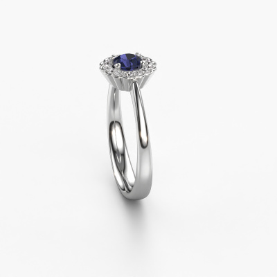 Der oben gezeigte Verlobungsring wird Debi genannt. Es ist ein Halo Ring, da er einen zentralen Edelstein und ein Band mit Pavé-Fassung hat. Der Platin ring ist mit einem 4.2 mm rund Saphir-Mittelstein besetzt und um ihn herum eine Pavé-Fassung mit Diamanten. Was diesen klassische, Platin Halo Ring besonders macht, sind die kleineren Steine, die den zentralen Stein umschließen. Dieser wunderschöne Verlobungsring wird als Halo Ring bezeichnet, da die kleineren Edelsteine dem zentralen Stein einen Lichthof geben. Damit die kleineren Steine den Mittelstein verstärken, müssen sie so platziert werden, dass keine Lichteinflüsse auftreten. Und hier kommen unsere erfahrenen Goldschmiede ins Spiel. Jeder einzelne Stein wird sorgfältig von Hand in den Ring gesetzt. Während der Herstellung wird der Lichteinfall ständig überprüft. So können wir sicherstellen, dass der spezielle Lichtkranz noch sichtbar ist. Am Ende erhalten Sie einen einzigartigen Verlobungsring mit einem Saphir Ihrer Wahl in der Mitte. Sie können sich die Wirkung eines solchen Ringes vorstellen, wenn Sie ihn an ihrem besonderen Tag für sie zum Leuchten bringen. Da wir unsere eigenen Ringe entwerfen und liefern, können wir Ihnen einen Verlobungsring zu einem Preis anbieten, den Sie nirgendwo anders finden. Ein Ring wird auf Bestellung angefertigt, wodurch kein überschüssiges Material anfällt. So können wir Ihnen ein gutes Angebot zum besten Preis machen. Wir verstehen, dass es sich riskant anfühlt, Ihren Verlobungsring online zu kaufen. Jedoch helfen wir Ihnen gerne beim Designprozess unter Berücksichtigung Ihres Budgets.Unser Team fügt unserer Online-Kollektion täglich neue Designs hinzu. Unsere Designer und Goldschmiede arbeiten zusammen, um das beste Design zu kreieren. Wir bemühen uns, eine vielfältige Kollektion von Schmuckstücken anzubieten. Vielleicht haben Sie ein bestimmtes Design im Sinn. Eines, dass Sie irgendwo gesehen haben. Gerne geben wir Ihnen eine kostenlose Beratung. Wir machen Ihnen ein Angebot, basierend auf einem fairen Preis/Leistungsverhältnis, das Sie verblüffen wird.Um es einfacher zu machen, bieten wir eine kostenlose 30-tägige Rücksendung.