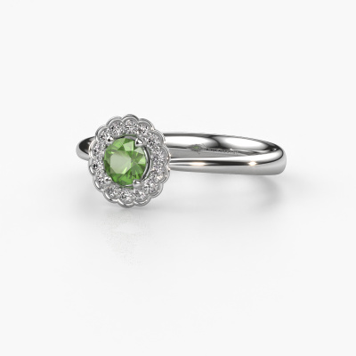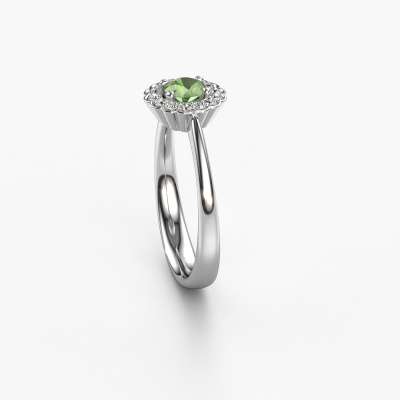 Der oben gezeigte Verlobungsring wird Debi genannt. Es ist ein Halo Ring, da er einen zentralen Edelstein und ein Band mit Pavé-Fassung hat. Der Platin ring ist mit einem 4.2 mm rund Turmalin grün-Mittelstein besetzt und um ihn herum eine Pavé-Fassung mit Diamanten. Was diesen klassische, Platin Halo Ring besonders macht, sind die kleineren Steine, die den zentralen Stein umschließen. Dieser wunderschöne Verlobungsring wird als Halo Ring bezeichnet, da die kleineren Edelsteine dem zentralen Stein einen Lichthof geben. Damit die kleineren Steine den Mittelstein verstärken, müssen sie so platziert werden, dass keine Lichteinflüsse auftreten. Und hier kommen unsere erfahrenen Goldschmiede ins Spiel. Jeder einzelne Stein wird sorgfältig von Hand in den Ring gesetzt. Während der Herstellung wird der Lichteinfall ständig überprüft. So können wir sicherstellen, dass der spezielle Lichtkranz noch sichtbar ist. Am Ende erhalten Sie einen einzigartigen Verlobungsring mit einem grüner Turmalin Ihrer Wahl in der Mitte. Sie können sich die Wirkung eines solchen Ringes vorstellen, wenn Sie ihn an ihrem besonderen Tag für sie zum Leuchten bringen. Da wir unsere eigenen Ringe entwerfen und liefern, können wir Ihnen einen Verlobungsring zu einem Preis anbieten, den Sie nirgendwo anders finden. Ein Ring wird auf Bestellung angefertigt, wodurch kein überschüssiges Material anfällt. So können wir Ihnen ein gutes Angebot zum besten Preis machen. Wir verstehen, dass es sich riskant anfühlt, Ihren Verlobungsring online zu kaufen. Jedoch helfen wir Ihnen gerne beim Designprozess unter Berücksichtigung Ihres Budgets.Unser Team fügt unserer Online-Kollektion täglich neue Designs hinzu. Unsere Designer und Goldschmiede arbeiten zusammen, um das beste Design zu kreieren. Wir bemühen uns, eine vielfältige Kollektion von Schmuckstücken anzubieten. Vielleicht haben Sie ein bestimmtes Design im Sinn. Eines, dass Sie irgendwo gesehen haben. Gerne geben wir Ihnen eine kostenlose Beratung. Wir machen Ihnen ein Angebot, basierend auf einem fairen Preis/Leistungsverhältnis, das Sie verblüffen wird.Um es einfacher zu machen, bieten wir eine kostenlose 30-tägige Rücksendung.