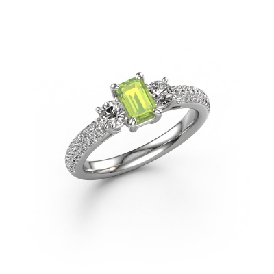 Dieser Verlobungsring aus Platin mit 6x4 mm Peridot heißt Marielle EME. Liebt deine Freundin exklusiven Schmuck? Oder möchten Sie ihr zeigen, dass sie den besten Schmuck verdient? Dieser Platin Ring ist pure Handwerkskunst - Liebe und Leidenschaft kombiniert mit den neuesten Techniken, die in perfekter Harmonie zusammentreffen. Es erfordert ein scharfes Auge, Geduld und eine geschickte Hand, um diesen Ring in Perfektion zu formen. Genau der richtige Job für unsere erfahrenen Juweliere! Die Peridot-Fassung verleiht diesem Platin besondere Ring eine extra glänzende Erscheinung. Passen Sie den Stil des Rings nach Ihren Wünschen und mit einer großen Auswahl an Edelmetallen und Edelsteinen an, die Sie selbst auswählen können. So kreieren Sie einen einzigartigen Ring für die exklusivste Frau Ihres Lebens! Jedes Schmuckstück ist um Ihrem Finger Glanz zu verleihen. Jeder Ring wird von unseren Goldschmieden liebevoll von Hand gefertigt.Da wir unsere eigenen Ringe entwerfen und liefern, können wir Ihnen einen Verlobungsring zu einem Preis anbieten, den Sie nirgendwo anders finden. Ein Ring wird auf Bestellung angefertigt, wodurch kein überschüssiges Material anfällt. So können wir Ihnen ein gutes Angebot zum besten Preis machen. Wir verstehen, dass es sich riskant anfühlt, Ihren Verlobungsring online zu kaufen. Jedoch helfen wir Ihnen gerne beim Designprozess unter Berücksichtigung Ihres Budgets.Unser Team fügt unserer Online-Kollektion täglich neue Designs hinzu. Unsere Designer und Goldschmiede arbeiten zusammen, um das beste Design zu kreieren. Wir bemühen uns, eine vielfältige Kollektion von Schmuckstücken anzubieten. Vielleicht haben Sie ein bestimmtes Design im Sinn. Eines, dass Sie irgendwo gesehen haben. Gerne geben wir Ihnen eine kostenlose Beratung. Wir machen Ihnen ein Angebot, basierend auf einem fairen Preis/Leistungsverhältnis, das Sie verblüffen wird.Um es einfacher zu machen, bieten wir eine kostenlose 30-tägige Rücksendung.