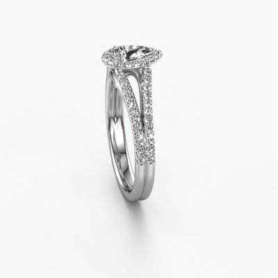 Der oben gezeigte Verlobungsring wird Verla pear 2 genannt. Es ist ein Halo Ring, da er einen zentralen Edelstein und ein Band mit Pavé-Fassung hat. Der Platin ring ist mit einem 0.45 crt tropfen Diamant-Mittelstein besetzt und um ihn herum eine Pavé-Fassung mit Diamanten. Was diesen exklusive, Platin Halo Ring besonders macht, sind die kleineren Steine, die den zentralen Stein umschließen. Dieser wunderschöne Verlobungsring wird als Halo Ring bezeichnet, da die kleineren Edelsteine dem zentralen Stein einen Lichthof geben. Damit die kleineren Steine den Mittelstein verstärken, müssen sie so platziert werden, dass keine Lichteinflüsse auftreten. Und hier kommen unsere erfahrenen Goldschmiede ins Spiel. Jeder einzelne Stein wird sorgfältig von Hand in den Ring gesetzt. Während der Herstellung wird der Lichteinfall ständig überprüft. So können wir sicherstellen, dass der spezielle Lichtkranz noch sichtbar ist. Am Ende erhalten Sie einen einzigartigen Verlobungsring mit einem Diamanten Ihrer Wahl in der Mitte. Sie können sich die Wirkung eines solchen Ringes vorstellen, wenn Sie ihn an ihrem besonderen Tag für sie zum Leuchten bringen. Nach Erhalt Ihrer Bestellung beginnen unsere Goldschmiede mit Leidenschaft den kreativen Prozess und fertigen Ihren Verlobungsring in unserem eigenen Studio. Da wir keine großen Lager haben, werden diese Kosten nicht an Sie weitergegeben. Unsere Preisgestaltung ist der Beweis dafür! Wir bieten Schmuck zum niedrigsten Preis, garantiert.Unsere Designer und Goldschmiede arbeiten jeden Tag zusammen und versuchen, neue Schmuckstücke zu kreieren. Vielleicht haben Sie irgendwo einen schönen, exklusive Verlobungsring gefunden, nach dem Ihr einzigartiger Ring gestaltet werden kann. Setzen Sie sich mit uns in Verbindung. Wir machen Ihnen ein Angebot, basierend auf einem fairen Preis/Leistungsverhältnis, das Sie begeistern wird.Um es einfacher zu machen, bieten wir eine kostenlose 30-tägige Rücksendung.
