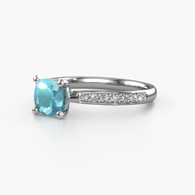 Der oben gezeigte Platin Verlobungsring wird Mignon cus 2 genannt. Es ist ein Pavé Solitär Ring, da er einen zentralen Edelstein und ein Band mit Pavé-Fassung hat. Der exklusive Pavé Solitär Verlobungsring ist in der Kombination Platin mit Platin und ist mit einem cussion 6 mm Blau Topas-Mittelstein besetzt und das Band hat eine Pavé-Fassung mit Lab grown Diamant. Jedes Schmuckstück wird hergestellt mit Leidenschaft und Liebe, von einem unserer Meister-Goldschmiede. Um den zentralen Stein noch mehr zu betonen, hat das Band eine Pavé-Fassung mit weiteren Blau Topas. Durch die offenen Krappen kann das Licht aus mehreren Winkeln auf den Blau Topas treffen und der Blau Topas-Ring funkelt noch mehr. Das obere Foto zeigt die leidenschaftlich handgefertigten Details des Rings. Die hohe Positionierung der Mittelstein ist ein echter Blickfang. Der perfekte Verlobungsring für das Kronjuwel Ihres Lebens!Nachdem Sie Ihre Bestellung aufgegeben haben, beginnen unsere Goldschmiede mit dem kreativen Prozess der Herstellung Ihres Mignon cus 2 Verlobungsring. Wir haben keine Lager. Das ist vorteilhaft, da diese Kosten nicht an Sie weitergegeben werden. Daher sind wir in der Lage, Schmuck zu außergewöhnlich niedrigen Preisen anzubieten.Unser Team fügt unserer Online-Kollektion täglich neue Designs hinzu. Unsere Designer und Goldschmiede arbeiten zusammen, um das beste Design zu kreieren. Wir bemühen uns, eine vielfältige Kollektion von Schmuckstücken anzubieten. Vielleicht haben Sie ein bestimmtes Design im Sinn. Eines, dass Sie irgendwo gesehen haben. Gerne geben wir Ihnen eine kostenlose Beratung. Wir machen Ihnen ein Angebot, basierend auf einem fairen Preis/Leistungsverhältnis, das Sie verblüffen wird.Um es einfacher zu machen, bieten wir eine kostenlose 30-tägige Rücksendung.