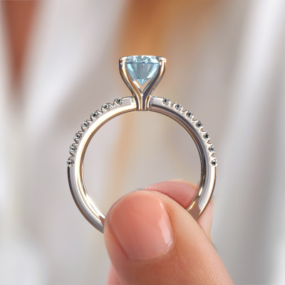Der oben gezeigte Platin Verlobungsring wird Crystal OVL 2 genannt. Es ist ein Pavé Solitär Ring, da er einen zentralen Edelstein und ein Band mit Pavé-Fassung hat. Der exklusive Pavé Solitär Verlobungsring ist in der Kombination Platin mit Platin und ist mit einem oval 9x7 mm blauer Labordiamant-Mittelstein besetzt und das Band hat eine Pavé-Fassung mit Lab grown Diamant. Jedes Schmuckstück wird von unseren Meister-Goldschmieden in unserem eigenen Studio für Sie gefertigt. Um den zentralen Stein noch mehr zu betonen, hat das Band eine Pavé-Fassung mit weiteren blauer Labordiamant. Durch die offenen Krappen kann das Licht aus mehreren Winkeln auf den blauer Labordiamant treffen und der blauer Labordiamant-Ring funkelt noch mehr. Das obere Foto zeigt die leidenschaftlich handgefertigten Details des Rings. Die hohe Positionierung der Mittelstein ist ein echter Blickfang. Der perfekte Verlobungsring für das Kronjuwel Ihres Lebens!Durch die Kombination modernster Technik mit uralter Handwerkskunst können wir alle Verlobungsringe in unserem eigenen Studio anfertigen. Jedes Schmuckstück wird auf Anfrage gefertigt. Das ist vorteilhaft, weil wir Ihnen dadurch einen Preis anbieten können, den Sie nirgendwo anders finden.Unser Team fügt unserer Online-Kollektion täglich neue Designs hinzu. Unsere Designer und Goldschmiede arbeiten zusammen, um das beste Design zu kreieren. Wir bemühen uns, eine vielfältige Kollektion von Schmuckstücken anzubieten. Vielleicht haben Sie ein bestimmtes Design im Sinn. Eines, dass Sie irgendwo gesehen haben. Gerne geben wir Ihnen eine kostenlose Beratung. Wir machen Ihnen ein Angebot, basierend auf einem fairen Preis/Leistungsverhältnis, das Sie verblüffen wird.Um es einfacher zu machen, bieten wir eine kostenlose 30-tägige Rücksendung.