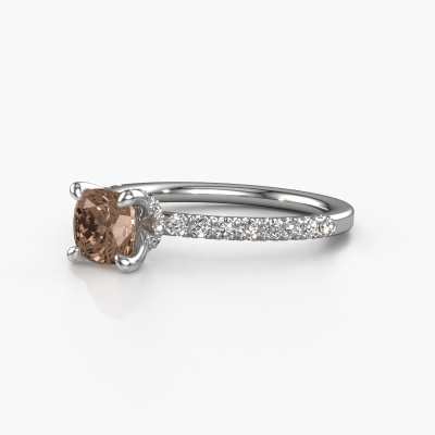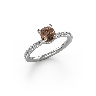 Der oben gezeigte Platin Verlobungsring wird Crystal CUS 4 genannt. Es ist ein Pavé Solitär Ring, da er einen zentralen Edelstein und ein Band mit Pavé-Fassung hat. Der schicke Pavé Solitär Verlobungsring ist in der Kombination Platin mit Platin und ist mit einem cussion 1.00 crt Braun Diamant-Mittelstein besetzt und das Band hat eine Pavé-Fassung mit Diamanten. Jedes Schmuckstück ist um Ihrem Finger Glanz zu verleihen. Jeder Ring wird von unseren Goldschmieden liebevoll von Hand gefertigt. Um den zentralen Stein noch mehr zu betonen, hat das Band eine Pavé-Fassung mit weiteren Braun Diamant. Durch die offenen Krappen kann das Licht aus mehreren Winkeln auf den Braun Diamant treffen und der Braun Diamant-Ring funkelt noch mehr. Das obere Foto zeigt die leidenschaftlich handgefertigten Details des Rings. Die hohe Positionierung der Mittelstein ist ein echter Blickfang. Der perfekte Verlobungsring für das Kronjuwel Ihres Lebens!Mit unserer modernen Technik können wir Schmuckstücke von höchster Qualität mit größter Sorgfalt für Sie entwerfen und anpassen. Unsere Verlobungsringe sind immer um 30 Prozent günstiger als bei anderen Juwelieren. Wir fertigen Verlobungsringe auf Bestellung, also müssen wir keine großen Lager unterhalten. Wenn Sie ein bestimmtes Budget haben, beraten wir Sie gerne entsprechend.Haben Sie einen bestimmten Ring im Sinn? Eines, dass Sie irgendwo gesehen haben. Bitte zögern Sie nicht, uns zu sagen, was Sie wollen und wir werden Ihr Design in einen Einzigartigen Verlobungsring verwandeln. Sie können die Entwicklungen Ihres Ringdesigns verfolgen, da wir 3D-Zeichnungen verwenden. Das gibt Ihnen eine realistische Vorschau Ihres Designs. Wir senden Ihnen gerne ein unverbindliches Angebot zu einem fairen Preis/Leistungsverhältnis. Es wird Sie erstaunen.Um es einfacher zu machen, bieten wir eine kostenlose 30-tägige Rücksendung.