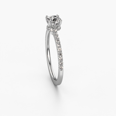 Der oben gezeigte Platin Verlobungsring wird Crystal rnd 4 genannt. Es ist ein Pavé Solitär Ring, da er einen zentralen Edelstein und ein Band mit Pavé-Fassung hat. Der Fantasie Pavé Solitär Verlobungsring ist in der Kombination Platin mit Platin und ist mit einem rund 0.50 crt Diamant-Mittelstein besetzt und das Band hat eine Pavé-Fassung mit Lab grown Diamant. Jedes Schmuckstück lässt Ihren Finger erstrahlen. Ihr Ring ist mit Liebe von unseren Goldschmieden handgefertigt. Um den zentralen Stein noch mehr zu betonen, hat das Band eine Pavé-Fassung mit weiteren Diamant. Durch die offenen Krappen kann das Licht aus mehreren Winkeln auf den Diamant treffen und der Diamant-Ring funkelt noch mehr. Das obere Foto zeigt die leidenschaftlich handgefertigten Details des Rings. Die hohe Positionierung der Mittelstein ist ein echter Blickfang. Der perfekte Verlobungsring für das Kronjuwel Ihres Lebens!Mit unserer modernen Technik können wir Schmuckstücke von höchster Qualität mit größter Sorgfalt für Sie entwerfen und anpassen. Unsere Verlobungsringe sind immer um 30 Prozent günstiger als bei anderen Juwelieren. Wir fertigen Verlobungsringe auf Bestellung, also müssen wir keine großen Lager unterhalten. Wenn Sie ein bestimmtes Budget haben, beraten wir Sie gerne entsprechend.Haben Sie irgendwo einen bestimmten Verlobungsring gefunden, den Sie Ihrem Liebsten schenken möchten? Sie können uns gerne sagen, was Sie wollen und wir werden Ihr Design in einen Einzigartigen Fantasie Verlobungsring verwandeln. Sie können die Entwicklungen Ihres Ringdesigns verfolgen, da wir 3D-Zeichnungen verwenden. Das gibt Ihnen eine realistische Vorschau, wie Ihr Design aussehen wird. Sie können auch einen Dummy vorbestellen. Ein Dummy ist ein Kunststoffring, der nach Ihrem Ringdesign gestaltet werden kann. Sie können ihn anprobieren und prüfen, ob seine Breite und Größe für Sie geeignet sind. Wir senden Ihnen gerne ein unverbindliches Angebot zu einem fairen Preis/Leistungsverhältnis. Sie werden in Anbetracht der Qualität des Rings und der Edelsteine überrascht sein.Um es einfacher zu machen, bieten wir eine kostenlose 30-tägige Rücksendung.