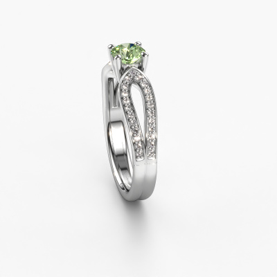 Der oben gezeigte Platin Verlobungsring wird Antonia rnd 2 genannt. Es ist ein Pavé Solitär Ring, da er einen zentralen Edelstein und ein Band mit Pavé-Fassung hat. Der traditionell Pavé Solitär Verlobungsring ist in der Kombination Platin mit Platin und ist mit einem rund 5 mm grüner Labor-Diamant-Mittelstein besetzt und das Band hat eine Pavé-Fassung mit Diamanten. Jedes Schmuckstück wird nur für Sie persönlich hergestellt, mit Liebe zum Detail und Design. Um den zentralen Stein noch mehr zu betonen, hat das Band eine Pavé-Fassung mit weiteren grüner Labor-Diamant. Durch die offenen Krappen kann das Licht aus mehreren Winkeln auf den grüner Labor-Diamant treffen und der grüner Labor-Diamant-Ring funkelt noch mehr. Das obere Foto zeigt die leidenschaftlich handgefertigten Details des Rings. Die hohe Positionierung der Mittelstein ist ein echter Blickfang. Der perfekte Verlobungsring für das Kronjuwel Ihres Lebens!Nachdem Sie Ihre Bestellung aufgegeben haben, beginnen unsere Goldschmiede mit dem kreativen Prozess der Herstellung Ihres Antonia rnd 2 Verlobungsring. Wir haben keine Lager. Das ist vorteilhaft, da diese Kosten nicht an Sie weitergegeben werden. Daher sind wir in der Lage, Schmuck zu außergewöhnlich niedrigen Preisen anzubieten.Haben Sie irgendwo einen bestimmten Verlobungsring gefunden, den Sie Ihrem Liebsten schenken möchten? Sie können uns gerne sagen, was Sie wollen und wir werden Ihr Design in einen Einzigartigen traditionell Verlobungsring verwandeln. Sie können die Entwicklungen Ihres Ringdesigns verfolgen, da wir 3D-Zeichnungen verwenden. Das gibt Ihnen eine realistische Vorschau, wie Ihr Design aussehen wird. Sie können auch einen Dummy vorbestellen. Ein Dummy ist ein Kunststoffring, der nach Ihrem Ringdesign gestaltet werden kann. Sie können ihn anprobieren und prüfen, ob seine Breite und Größe für Sie geeignet sind. Wir senden Ihnen gerne ein unverbindliches Angebot zu einem fairen Preis/Leistungsverhältnis. Sie werden in Anbetracht der Qualität des Rings und der Edelsteine überrascht sein.Um es einfacher zu machen, bieten wir eine kostenlose 30-tägige Rücksendung.