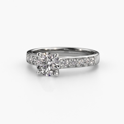 Der oben gezeigte Platin Verlobungsring wird Valorie RND 2 genannt. Es ist ein Pavé Solitär Ring, da er einen zentralen Edelstein und ein Band mit Pavé-Fassung hat. Der moderne Pavé Solitär Verlobungsring ist in der Kombination Platin mit Platin und ist mit einem rund 1.00 crt Lab-grown Diamant-Mittelstein besetzt und das Band hat eine Pavé-Fassung mit Lab grown Diamant. Jedes Schmuckstück wird nur für Sie persönlich hergestellt, mit Liebe zum Detail und Design. Um den zentralen Stein noch mehr zu betonen, hat das Band eine Pavé-Fassung mit weiteren Lab-grown Diamant. Durch die offenen Krappen kann das Licht aus mehreren Winkeln auf den Lab-grown Diamant treffen und der Lab-grown Diamant-Ring funkelt noch mehr. Das obere Foto zeigt die leidenschaftlich handgefertigten Details des Rings. Die hohe Positionierung der Mittelstein ist ein echter Blickfang. Der perfekte Verlobungsring für das Kronjuwel Ihres Lebens!Mit unserer modernen Technik können wir Schmuckstücke von höchster Qualität mit größter Sorgfalt für Sie entwerfen und anpassen. Unsere Verlobungsringe sind immer um 30 Prozent günstiger als bei anderen Juwelieren. Wir fertigen Verlobungsringe auf Bestellung, also müssen wir keine großen Lager unterhalten. Wenn Sie ein bestimmtes Budget haben, beraten wir Sie gerne entsprechend.Unsere Designer und Goldschmiede arbeiten jeden Tag zusammen und versuchen, neue Schmuckstücke zu kreieren. Vielleicht haben Sie irgendwo einen schönen, moderne Verlobungsring gefunden, nach dem Ihr einzigartiger Ring gestaltet werden kann. Setzen Sie sich mit uns in Verbindung. Wir machen Ihnen ein Angebot, basierend auf einem fairen Preis/Leistungsverhältnis, das Sie begeistern wird.Um es einfacher zu machen, bieten wir eine kostenlose 30-tägige Rücksendung.