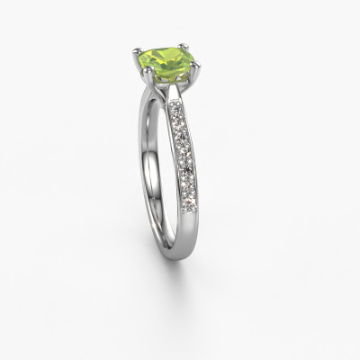 Der oben gezeigte Platin Verlobungsring wird Mignon cus 2 genannt. Es ist ein Pavé Solitär Ring, da er einen zentralen Edelstein und ein Band mit Pavé-Fassung hat. Der exklusive Pavé Solitär Verlobungsring ist in der Kombination Platin mit Platin und ist mit einem cussion 6 mm Peridot-Mittelstein besetzt und das Band hat eine Pavé-Fassung mit Lab grown Diamant. Jedes Schmuckstück wird hergestellt mit Leidenschaft und Liebe, von einem unserer Meister-Goldschmiede. Um den zentralen Stein noch mehr zu betonen, hat das Band eine Pavé-Fassung mit weiteren Peridot. Durch die offenen Krappen kann das Licht aus mehreren Winkeln auf den Peridot treffen und der Peridot-Ring funkelt noch mehr. Das obere Foto zeigt die leidenschaftlich handgefertigten Details des Rings. Die hohe Positionierung der Mittelstein ist ein echter Blickfang. Der perfekte Verlobungsring für das Kronjuwel Ihres Lebens!Nachdem Sie Ihre Bestellung aufgegeben haben, beginnen unsere Goldschmiede mit dem kreativen Prozess der Herstellung Ihres Mignon cus 2 Verlobungsring. Wir haben keine Lager. Das ist vorteilhaft, da diese Kosten nicht an Sie weitergegeben werden. Daher sind wir in der Lage, Schmuck zu außergewöhnlich niedrigen Preisen anzubieten.Unser Team fügt unserer Online-Kollektion täglich neue Designs hinzu. Unsere Designer und Goldschmiede arbeiten zusammen, um das beste Design zu kreieren. Wir bemühen uns, eine vielfältige Kollektion von Schmuckstücken anzubieten. Vielleicht haben Sie ein bestimmtes Design im Sinn. Eines, dass Sie irgendwo gesehen haben. Gerne geben wir Ihnen eine kostenlose Beratung. Wir machen Ihnen ein Angebot, basierend auf einem fairen Preis/Leistungsverhältnis, das Sie verblüffen wird.Um es einfacher zu machen, bieten wir eine kostenlose 30-tägige Rücksendung.