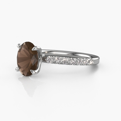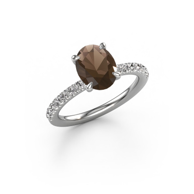 Der oben gezeigte Platin Verlobungsring wird Crystal OVL 2 genannt. Es ist ein Pavé Solitär Ring, da er einen zentralen Edelstein und ein Band mit Pavé-Fassung hat. Der exklusive Pavé Solitär Verlobungsring ist in der Kombination Platin mit Platin und ist mit einem oval 9x7 mm Rauchquarz-Mittelstein besetzt und das Band hat eine Pavé-Fassung mit Lab grown Diamant. Jedes Schmuckstück wird von unseren Meister-Goldschmieden in unserem eigenen Studio für Sie gefertigt. Um den zentralen Stein noch mehr zu betonen, hat das Band eine Pavé-Fassung mit weiteren Rauchquarz. Durch die offenen Krappen kann das Licht aus mehreren Winkeln auf den Rauchquarz treffen und der Rauchquarz-Ring funkelt noch mehr. Das obere Foto zeigt die leidenschaftlich handgefertigten Details des Rings. Die hohe Positionierung der Mittelstein ist ein echter Blickfang. Der perfekte Verlobungsring für das Kronjuwel Ihres Lebens!Durch die Kombination modernster Technik mit uralter Handwerkskunst können wir alle Verlobungsringe in unserem eigenen Studio anfertigen. Jedes Schmuckstück wird auf Anfrage gefertigt. Das ist vorteilhaft, weil wir Ihnen dadurch einen Preis anbieten können, den Sie nirgendwo anders finden.Unser Team fügt unserer Online-Kollektion täglich neue Designs hinzu. Unsere Designer und Goldschmiede arbeiten zusammen, um das beste Design zu kreieren. Wir bemühen uns, eine vielfältige Kollektion von Schmuckstücken anzubieten. Vielleicht haben Sie ein bestimmtes Design im Sinn. Eines, dass Sie irgendwo gesehen haben. Gerne geben wir Ihnen eine kostenlose Beratung. Wir machen Ihnen ein Angebot, basierend auf einem fairen Preis/Leistungsverhältnis, das Sie verblüffen wird.Um es einfacher zu machen, bieten wir eine kostenlose 30-tägige Rücksendung.