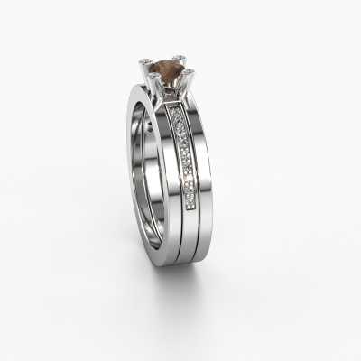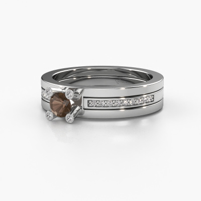 Der oben gezeigte Platin Verlobungsring wird Alisha genannt. Es ist ein Pavé Solitär Ring, da er einen zentralen Edelstein und ein Band mit Pavé-Fassung hat. Der design Pavé Solitär Verlobungsring ist in der Kombination Platin mit Platin und ist mit einem rund 4 mm Rauchquarz-Mittelstein besetzt und das Band hat eine Pavé-Fassung mit Diamanten. Jedes Schmuckstück ist einzigartig in jeder Hinsicht! Einfach nach Ihren Wünschen anzupassen. Um den zentralen Stein noch mehr zu betonen, hat das Band eine Pavé-Fassung mit weiteren Rauchquarz. Durch die offenen Krappen kann das Licht aus mehreren Winkeln auf den Rauchquarz treffen und der Rauchquarz-Ring funkelt noch mehr. Das obere Foto zeigt die leidenschaftlich handgefertigten Details des Rings. Die hohe Positionierung der Mittelstein ist ein echter Blickfang. Der perfekte Verlobungsring für das Kronjuwel Ihres Lebens!Durch die Kombination modernster Technik mit uralter Handwerkskunst können wir alle Verlobungsringe in unserem eigenen Studio anfertigen. Jedes Schmuckstück wird auf Anfrage gefertigt. Das ist vorteilhaft, weil wir Ihnen dadurch einen Preis anbieten können, den Sie nirgendwo anders finden.Haben Sie irgendwo einen bestimmten Verlobungsring gefunden, den Sie Ihrem Liebsten schenken möchten? Sie können uns gerne sagen, was Sie wollen und wir werden Ihr Design in einen Einzigartigen design Verlobungsring verwandeln. Sie können die Entwicklungen Ihres Ringdesigns verfolgen, da wir 3D-Zeichnungen verwenden. Das gibt Ihnen eine realistische Vorschau, wie Ihr Design aussehen wird. Sie können auch einen Dummy vorbestellen. Ein Dummy ist ein Kunststoffring, der nach Ihrem Ringdesign gestaltet werden kann. Sie können ihn anprobieren und prüfen, ob seine Breite und Größe für Sie geeignet sind. Wir senden Ihnen gerne ein unverbindliches Angebot zu einem fairen Preis/Leistungsverhältnis. Sie werden in Anbetracht der Qualität des Rings und der Edelsteine überrascht sein.Um es einfacher zu machen, bieten wir eine kostenlose 30-tägige Rücksendung.