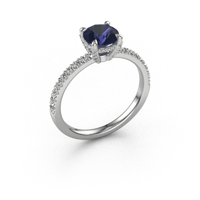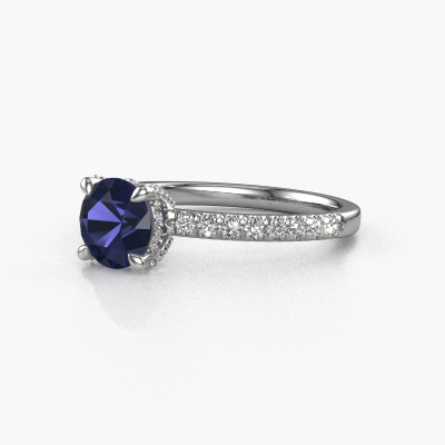 Der oben gezeigte Platin Verlobungsring wird Saskia rnd 1 genannt. Es ist ein Pavé Solitär Ring, da er einen zentralen Edelstein und ein Band mit Pavé-Fassung hat. Der exklusive Pavé Solitär Verlobungsring ist in der Kombination Platin mit Platin und ist mit einem rund 6.5 mm Saphir-Mittelstein besetzt und das Band hat eine Pavé-Fassung mit Lab grown Diamant. Jedes Schmuckstück wird hergestellt mit Leidenschaft und Liebe, von einem unserer Meister-Goldschmiede. Um den zentralen Stein noch mehr zu betonen, hat das Band eine Pavé-Fassung mit weiteren Saphir. Durch die offenen Krappen kann das Licht aus mehreren Winkeln auf den Saphir treffen und der Saphir-Ring funkelt noch mehr. Das obere Foto zeigt die leidenschaftlich handgefertigten Details des Rings. Die hohe Positionierung der Mittelstein ist ein echter Blickfang. Der perfekte Verlobungsring für das Kronjuwel Ihres Lebens!Durch die Kombination modernster Technik mit uralter Handwerkskunst können wir alle Verlobungsringe in unserem eigenen Studio anfertigen. Jedes Schmuckstück wird auf Anfrage gefertigt. Das ist vorteilhaft, weil wir Ihnen dadurch einen Preis anbieten können, den Sie nirgendwo anders finden.Haben Sie einen bestimmten Ring im Sinn? Eines, dass Sie irgendwo gesehen haben. Bitte zögern Sie nicht, uns zu sagen, was Sie wollen und wir werden Ihr Design in einen Einzigartigen Verlobungsring verwandeln. Sie können die Entwicklungen Ihres Ringdesigns verfolgen, da wir 3D-Zeichnungen verwenden. Das gibt Ihnen eine realistische Vorschau Ihres Designs. Wir senden Ihnen gerne ein unverbindliches Angebot zu einem fairen Preis/Leistungsverhältnis. Es wird Sie erstaunen.Um es einfacher zu machen, bieten wir eine kostenlose 30-tägige Rücksendung.