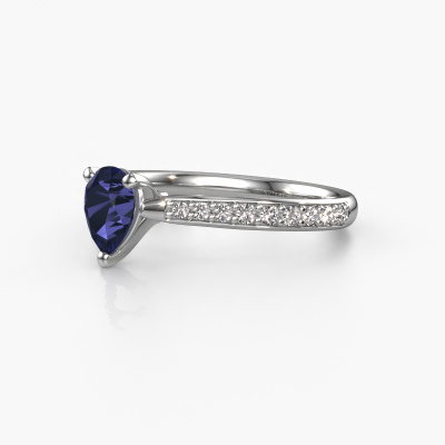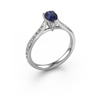 Der oben gezeigte Platin Verlobungsring wird Mignon per 2 genannt. Es ist ein Pavé Solitär Ring, da er einen zentralen Edelstein und ein Band mit Pavé-Fassung hat. Der trendige Pavé Solitär Verlobungsring ist in der Kombination Platin mit Platin und ist mit einem tropfen 6.5x4.5 mm Saphir-Mittelstein besetzt und das Band hat eine Pavé-Fassung mit Diamanten. Jedes Schmuckstück wird von unseren Meister-Goldschmieden in unserem eigenen Studio für Sie gefertigt. Um den zentralen Stein noch mehr zu betonen, hat das Band eine Pavé-Fassung mit weiteren Saphir. Durch die offenen Krappen kann das Licht aus mehreren Winkeln auf den Saphir treffen und der Saphir-Ring funkelt noch mehr. Das obere Foto zeigt die leidenschaftlich handgefertigten Details des Rings. Die hohe Positionierung der Mittelstein ist ein echter Blickfang. Der perfekte Verlobungsring für das Kronjuwel Ihres Lebens!Haben Sie ein bestimmtes Budget? Sie können uns gerne kontaktieren, damit wir Ihre Optionen besprechen können. Wir bieten unsere Verlobungsringe zum garantiert besten Preis, denn wir fertigen sie auf Bestellung. Solche Preise finden Sie nirgendwo anders!Unser Team fügt unserer Online-Kollektion täglich neue Designs hinzu. Unsere Designer und Goldschmiede arbeiten zusammen, um das beste Design zu kreieren. Wir bemühen uns, eine vielfältige Kollektion von Schmuckstücken anzubieten. Vielleicht haben Sie ein bestimmtes Design im Sinn. Eines, dass Sie irgendwo gesehen haben. Gerne geben wir Ihnen eine kostenlose Beratung. Wir machen Ihnen ein Angebot, basierend auf einem fairen Preis/Leistungsverhältnis, das Sie verblüffen wird.Um es einfacher zu machen, bieten wir eine kostenlose 30-tägige Rücksendung.