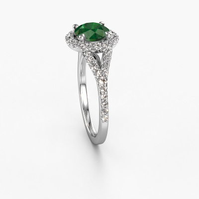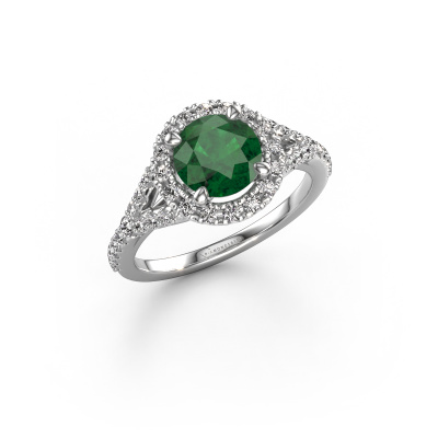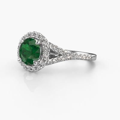 Der oben gezeigte Platin Verlobungsring wird Kimber RND genannt. Es ist ein Pavé Solitär Ring, da er einen zentralen Edelstein und ein Band mit Pavé-Fassung hat. Der klassische Pavé Solitär Verlobungsring ist in der Kombination Platin mit Platin und ist mit einem rund 7 mm Smaragd-Mittelstein besetzt und das Band hat eine Pavé-Fassung mit Lab grown Diamant. Jedes Schmuckstück ist um Ihrem Finger Glanz zu verleihen. Jeder Ring wird von unseren Goldschmieden liebevoll von Hand gefertigt. Um den zentralen Stein noch mehr zu betonen, hat das Band eine Pavé-Fassung mit weiteren Smaragd. Durch die offenen Krappen kann das Licht aus mehreren Winkeln auf den Smaragd treffen und der Smaragd-Ring funkelt noch mehr. Das obere Foto zeigt die leidenschaftlich handgefertigten Details des Rings. Die hohe Positionierung der Mittelstein ist ein echter Blickfang. Der perfekte Verlobungsring für das Kronjuwel Ihres Lebens!Nach Erhalt Ihrer Bestellung beginnen unsere Goldschmiede mit Leidenschaft den kreativen Prozess und fertigen Ihren Verlobungsring in unserem eigenen Studio. Da wir keine großen Lager haben, werden diese Kosten nicht an Sie weitergegeben. Unsere Preisgestaltung ist der Beweis dafür! Wir bieten Schmuck zum niedrigsten Preis, garantiert.Unser Team fügt unserer Online-Kollektion täglich neue Designs hinzu. Unsere Designer und Goldschmiede arbeiten zusammen, um das beste Design zu kreieren. Wir bemühen uns, eine vielfältige Kollektion von Schmuckstücken anzubieten. Vielleicht haben Sie ein bestimmtes Design im Sinn. Eines, dass Sie irgendwo gesehen haben. Gerne geben wir Ihnen eine kostenlose Beratung. Wir machen Ihnen ein Angebot, basierend auf einem fairen Preis/Leistungsverhältnis, das Sie verblüffen wird.Um es einfacher zu machen, bieten wir eine kostenlose 30-tägige Rücksendung.