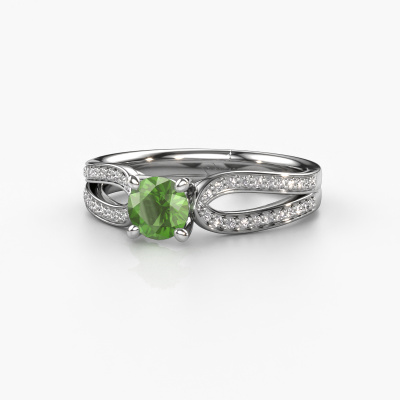 Der oben gezeigte Platin Verlobungsring wird Antonia rnd 2 genannt. Es ist ein Pavé Solitär Ring, da er einen zentralen Edelstein und ein Band mit Pavé-Fassung hat. Der traditionell Pavé Solitär Verlobungsring ist in der Kombination Platin mit Platin und ist mit einem rund 5 mm Turmalin grün-Mittelstein besetzt und das Band hat eine Pavé-Fassung mit Diamanten. Jedes Schmuckstück wird nur für Sie persönlich hergestellt, mit Liebe zum Detail und Design. Um den zentralen Stein noch mehr zu betonen, hat das Band eine Pavé-Fassung mit weiteren Turmalin grün. Durch die offenen Krappen kann das Licht aus mehreren Winkeln auf den Turmalin grün treffen und der Turmalin grün-Ring funkelt noch mehr. Das obere Foto zeigt die leidenschaftlich handgefertigten Details des Rings. Die hohe Positionierung der Mittelstein ist ein echter Blickfang. Der perfekte Verlobungsring für das Kronjuwel Ihres Lebens!Nachdem Sie Ihre Bestellung aufgegeben haben, beginnen unsere Goldschmiede mit dem kreativen Prozess der Herstellung Ihres Antonia rnd 2 Verlobungsring. Wir haben keine Lager. Das ist vorteilhaft, da diese Kosten nicht an Sie weitergegeben werden. Daher sind wir in der Lage, Schmuck zu außergewöhnlich niedrigen Preisen anzubieten.Haben Sie irgendwo einen bestimmten Verlobungsring gefunden, den Sie Ihrem Liebsten schenken möchten? Sie können uns gerne sagen, was Sie wollen und wir werden Ihr Design in einen Einzigartigen traditionell Verlobungsring verwandeln. Sie können die Entwicklungen Ihres Ringdesigns verfolgen, da wir 3D-Zeichnungen verwenden. Das gibt Ihnen eine realistische Vorschau, wie Ihr Design aussehen wird. Sie können auch einen Dummy vorbestellen. Ein Dummy ist ein Kunststoffring, der nach Ihrem Ringdesign gestaltet werden kann. Sie können ihn anprobieren und prüfen, ob seine Breite und Größe für Sie geeignet sind. Wir senden Ihnen gerne ein unverbindliches Angebot zu einem fairen Preis/Leistungsverhältnis. Sie werden in Anbetracht der Qualität des Rings und der Edelsteine überrascht sein.Um es einfacher zu machen, bieten wir eine kostenlose 30-tägige Rücksendung.