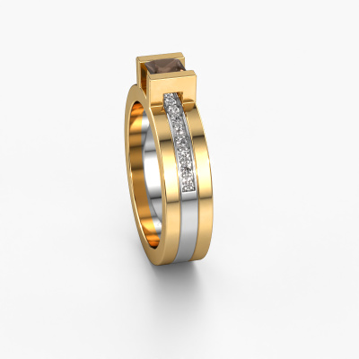 Der oben gezeigte Gold Verlobungsring wird Desire genannt. Es ist ein Pavé Solitär Ring, da er einen zentralen Edelstein und ein Band mit Pavé-Fassung hat. Der moderne Pavé Solitär Verlobungsring ist in der Kombination 14 Karat Gold mit Weißgold und ist mit einem princess 4 mm Rauchquarz-Mittelstein besetzt und das Band hat eine Pavé-Fassung mit Diamanten. Jedes Schmuckstück wird von unseren Meister-Goldschmieden in unserem eigenen Studio für Sie gefertigt. Um den zentralen Stein noch mehr zu betonen, hat das Band eine Pavé-Fassung mit weiteren Rauchquarz. Durch die offenen Krappen kann das Licht aus mehreren Winkeln auf den Rauchquarz treffen und der Rauchquarz-Ring funkelt noch mehr. Das obere Foto zeigt die leidenschaftlich handgefertigten Details des Rings. Die hohe Positionierung der Mittelstein ist ein echter Blickfang. Der perfekte Verlobungsring für das Kronjuwel Ihres Lebens!Durch die Kombination modernster Technik mit uralter Handwerkskunst können wir alle Verlobungsringe in unserem eigenen Studio anfertigen. Jedes Schmuckstück wird auf Anfrage gefertigt. Das ist vorteilhaft, weil wir Ihnen dadurch einen Preis anbieten können, den Sie nirgendwo anders finden.Haben Sie irgendwo einen bestimmten Verlobungsring gefunden, den Sie Ihrem Liebsten schenken möchten? Sie können uns gerne sagen, was Sie wollen und wir werden Ihr Design in einen Einzigartigen moderne Verlobungsring verwandeln. Sie können die Entwicklungen Ihres Ringdesigns verfolgen, da wir 3D-Zeichnungen verwenden. Das gibt Ihnen eine realistische Vorschau, wie Ihr Design aussehen wird. Sie können auch einen Dummy vorbestellen. Ein Dummy ist ein Kunststoffring, der nach Ihrem Ringdesign gestaltet werden kann. Sie können ihn anprobieren und prüfen, ob seine Breite und Größe für Sie geeignet sind. Wir senden Ihnen gerne ein unverbindliches Angebot zu einem fairen Preis/Leistungsverhältnis. Sie werden in Anbetracht der Qualität des Rings und der Edelsteine überrascht sein.Um es einfacher zu machen, bieten wir eine kostenlose 30-tägige Rücksendung.