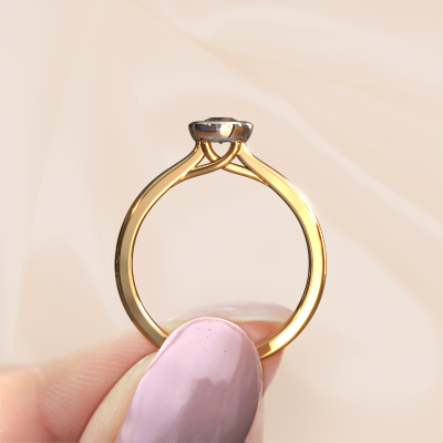 Der oben gezeigte Verlobungsring wird Kaylee genannt. Wir nennen das einen Solitär-Ring, denn er hat einen einzelnen Edelstein. Es ist ein 14 Karat Gold ring, mit 4 mm rund Rauchquarz. Das Besondere an unserem Konfigurator ist dass Sie selbst einem Schmuckstück zusammenstellen können zu einem eigenen persönlichen Schmuckstück. Dieser Solitäre Verlobungsring ist gefertigt in der Edelmetall Kombination Gold mit Weißgold, aber Sie können also auch wählen aus anderen Farben. Jedes Schmuckstück wird hergestellt von einem Team leidenschaftlicher Goldschmiede und Schmuckdesigner. Das wird Ihr Kronjuwel unbedingt zu einem Blickfang machen. Der Solitär-Verlobungsring ist eine Sonderform des Verlobungsring. Seine offenen Krappen ermöglichen, dass Licht aus mehr Winkeln auf den Edelstein trifft. Dieser modische Verlobungsring ist durch die hohe Positionierung des Edelsteins ein atemberaubender Blickfang. Wir schmücken diesen Solitär-Ring sorgfältig von Hand, damit Sie Ihren Anfrage mit einem einzigartigen Ring würdigen können. Die Liebe Ihres Lebens verdient nur das Beste. Da wir unsere eigenen Ringe entwerfen und liefern, können wir Ihnen einen Verlobungsring zu einem Preis anbieten, den Sie nirgendwo anders finden. Ein Ring wird auf Bestellung angefertigt, wodurch kein überschüssiges Material anfällt. So können wir Ihnen ein gutes Angebot zum besten Preis machen. Wir verstehen, dass es sich riskant anfühlt, Ihren Verlobungsring online zu kaufen. Jedoch helfen wir Ihnen gerne beim Designprozess unter Berücksichtigung Ihres Budgets.Verschiedene Arten von neuen Ringen werden täglich von unserem Team angefertigt. Vielleicht haben Sie irgendwo einen Solitär Verlobungsring gefunden. Einen, den Sie Ihrem Liebsten schenken möchten. Bitte zögern Sie nicht, unseren Schmuckdesignern Ihre Gedanken und Ihr Design zu zeigen. Wir würden gerne Ihr Design in einen modische Verlobungsring verwandeln. Sie können die Entwicklungen Ihres Ringdesigns verfolgen, da wir sehr detaillierte 3D-Zeichnungen verwenden. Darüber hinaus können Sie einen Dummy des Designs bestellen. Ein Dummy ist ein Kunststoffring, der nach Ihrem Ringdesign gestaltet werden kann. Sie können ihn anprobieren und prüfen, ob der Verlobungsring Ihren Vorstellungen entspricht. Wir senden Ihnen gerne ein unverbindliches Angebot zu einem fairen Preis/Leistungsverhältnis. Das Angebot wird Sie angesichts der Qualität des Rings und der Edelsteine verblüffen.Um es einfacher zu machen, bieten wir eine kostenlose 30-tägige Rücksendung.
