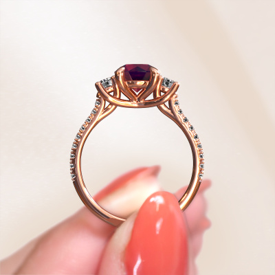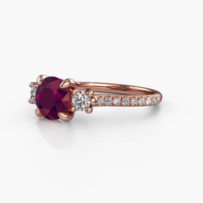 Dieser Verlobungsring aus 14 Karat Roségold mit 6.8 mm Rhodolit heißt Jesica. Was macht Ihre Beziehung einzigartig? Was hat sie an sich, was Sie dazu bringt, auf die Knie zu fallen? Die einzigartige Verbindung zwischen Ihnen beiden wird durch einen ebenso einzigartigen Ring unterstrichen. Ein einzigartiger 3-stone Verlobungsring, der nur für sie gemacht wurde. Deshalb passt dieser Ring wie angegossen. Jedes einzelne Detail dieses graziöse, Roségold Rhodolit Verlobungsring wird von unserem erfahrenen Goldschmieden in unserem eigenen Studio von Hand ausgesucht, bearbeitet und poliert. Das Endprodukt ist ein exquisiter Ring, einzigartig und bis zur Perfektion gebracht. Danach streben unsere erfahrenen Juweliere. Jedes Schmuckstück wird nur für Sie persönlich hergestellt, mit Liebe zum Detail und Design.Nach Erhalt Ihrer Bestellung beginnen unsere Goldschmiede mit Leidenschaft den kreativen Prozess und fertigen Ihren Verlobungsring in unserem eigenen Studio. Da wir keine großen Lager haben, werden diese Kosten nicht an Sie weitergegeben. Unsere Preisgestaltung ist der Beweis dafür! Wir bieten Schmuck zum niedrigsten Preis, garantiert.Verschiedene Arten von neuen Ringen werden täglich von unserem Team angefertigt. Vielleicht haben Sie irgendwo einen 3-stone Verlobungsring gefunden. Einen, den Sie Ihrem Liebsten schenken möchten. Bitte zögern Sie nicht, unseren Schmuckdesignern Ihre Gedanken und Ihr Design zu zeigen. Wir würden gerne Ihr Design in einen klassische Verlobungsring verwandeln. Sie können die Entwicklungen Ihres Ringdesigns verfolgen, da wir sehr detaillierte 3D-Zeichnungen verwenden. Darüber hinaus können Sie einen Dummy des Designs bestellen. Ein Dummy ist ein Kunststoffring, der nach Ihrem Ringdesign gestaltet werden kann. Sie können ihn anprobieren und prüfen, ob der Verlobungsring Ihren Vorstellungen entspricht. Wir senden Ihnen gerne ein unverbindliches Angebot zu einem fairen Preis/Leistungsverhältnis. Das Angebot wird Sie angesichts der Qualität des Rings und der Edelsteine verblüffen.Um es einfacher zu machen, bieten wir eine kostenlose 30-tägige Rücksendung.