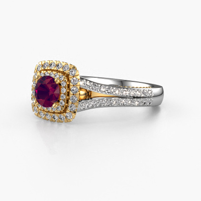 Der oben gezeigte Weißgold Verlobungsring wird Annette genannt. Es ist ein Halo Ring, da er einen zentralen Edelstein und ein Band mit Pavé-Fassung hat. Der Vintage Halo Verlobungsring ist in der Kombination 14 Karat Weißgold mit Gold und ist mit einem rund 5 mm Rhodolit-Mittelstein besetzt und das Band hat eine Pavé-Fassung mit Diamanten. Jedes Schmuckstück wird von unseren Meister-Goldschmieden in unserem eigenen Studio für Sie gefertigt. Um den zentralen Stein noch mehr zu betonen, hat das Band eine Pavé-Fassung mit weiteren Rhodolit. Durch die offenen Krappen kann das Licht aus mehreren Winkeln auf den Rhodolit treffen und der Rhodolit-Ring funkelt noch mehr. Das obere Foto zeigt die leidenschaftlich handgefertigten Details des Rings. Die hohe Positionierung der Mittelstein ist ein echter Blickfang. Der perfekte Verlobungsring für das Kronjuwel Ihres Lebens!Nach Erhalt Ihrer Bestellung beginnen unsere Goldschmiede mit Leidenschaft den kreativen Prozess und fertigen Ihren Verlobungsring in unserem eigenen Studio. Da wir keine großen Lager haben, werden diese Kosten nicht an Sie weitergegeben. Unsere Preisgestaltung ist der Beweis dafür! Wir bieten Schmuck zum niedrigsten Preis, garantiert.Haben Sie irgendwo einen bestimmten Verlobungsring gefunden, den Sie Ihrem Liebsten schenken möchten? Sie können uns gerne sagen, was Sie wollen und wir werden Ihr Design in einen Einzigartigen Vintage Verlobungsring verwandeln. Sie können die Entwicklungen Ihres Ringdesigns verfolgen, da wir 3D-Zeichnungen verwenden. Das gibt Ihnen eine realistische Vorschau, wie Ihr Design aussehen wird. Sie können auch einen Dummy vorbestellen. Ein Dummy ist ein Kunststoffring, der nach Ihrem Ringdesign gestaltet werden kann. Sie können ihn anprobieren und prüfen, ob seine Breite und Größe für Sie geeignet sind. Wir senden Ihnen gerne ein unverbindliches Angebot zu einem fairen Preis/Leistungsverhältnis. Sie werden in Anbetracht der Qualität des Rings und der Edelsteine überrascht sein.Um es einfacher zu machen, bieten wir eine kostenlose 30-tägige Rücksendung.