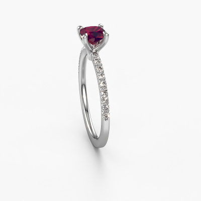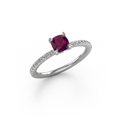 Der oben gezeigte Platin Verlobungsring wird Crystal CUS 2 genannt. Es ist ein Pavé Solitär Ring, da er einen zentralen Edelstein und ein Band mit Pavé-Fassung hat. Der klassische Pavé Solitär Verlobungsring ist in der Kombination Platin mit Platin und ist mit einem cussion 5 mm Rhodolit-Mittelstein besetzt und das Band hat eine Pavé-Fassung mit Diamanten. Jedes Schmuckstück wird von unseren Meister-Goldschmieden in unserem eigenen Studio für Sie gefertigt. Um den zentralen Stein noch mehr zu betonen, hat das Band eine Pavé-Fassung mit weiteren Rhodolit. Durch die offenen Krappen kann das Licht aus mehreren Winkeln auf den Rhodolit treffen und der Rhodolit-Ring funkelt noch mehr. Das obere Foto zeigt die leidenschaftlich handgefertigten Details des Rings. Die hohe Positionierung der Mittelstein ist ein echter Blickfang. Der perfekte Verlobungsring für das Kronjuwel Ihres Lebens!Nachdem Sie Ihre Bestellung aufgegeben haben, beginnen unsere Goldschmiede mit dem kreativen Prozess der Herstellung Ihres Crystal CUS 2 Verlobungsring. Wir haben keine Lager. Das ist vorteilhaft, da diese Kosten nicht an Sie weitergegeben werden. Daher sind wir in der Lage, Schmuck zu außergewöhnlich niedrigen Preisen anzubieten.Verschiedene Arten von neuen Ringen werden täglich von unserem Team angefertigt. Vielleicht haben Sie irgendwo einen Pavé Solitär Verlobungsring gefunden. Einen, den Sie Ihrem Liebsten schenken möchten. Bitte zögern Sie nicht, unseren Schmuckdesignern Ihre Gedanken und Ihr Design zu zeigen. Wir würden gerne Ihr Design in einen klassische Verlobungsring verwandeln. Sie können die Entwicklungen Ihres Ringdesigns verfolgen, da wir sehr detaillierte 3D-Zeichnungen verwenden. Darüber hinaus können Sie einen Dummy des Designs bestellen. Ein Dummy ist ein Kunststoffring, der nach Ihrem Ringdesign gestaltet werden kann. Sie können ihn anprobieren und prüfen, ob der Verlobungsring Ihren Vorstellungen entspricht. Wir senden Ihnen gerne ein unverbindliches Angebot zu einem fairen Preis/Leistungsverhältnis. Das Angebot wird Sie angesichts der Qualität des Rings und der Edelsteine verblüffen.Um es einfacher zu machen, bieten wir eine kostenlose 30-tägige Rücksendung.