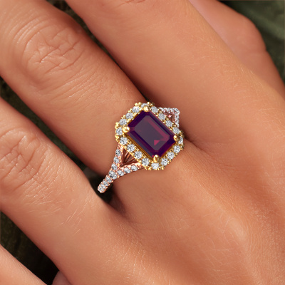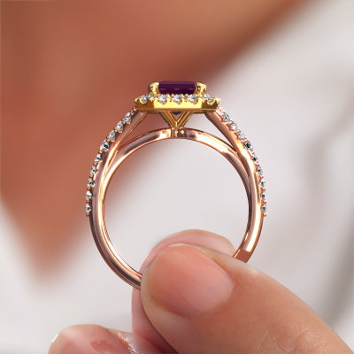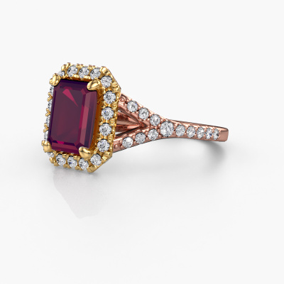 Der oben gezeigte Roségold Verlobungsring wird Kimber EME genannt. Es ist ein Pavé Solitär Ring, da er einen zentralen Edelstein und ein Band mit Pavé-Fassung hat. Der exklusive Pavé Solitär Verlobungsring ist in der Kombination 14 Karat Roségold mit Gold und ist mit einem smaragd schliff 8x6 mm Rhodolit-Mittelstein besetzt und das Band hat eine Pavé-Fassung mit Lab grown Diamant. Jedes Schmuckstück wird hergestellt von einem Team leidenschaftlicher Goldschmiede und Schmuckdesigner. Das wird Ihr Kronjuwel unbedingt zu einem Blickfang machen. Um den zentralen Stein noch mehr zu betonen, hat das Band eine Pavé-Fassung mit weiteren Rhodolit. Durch die offenen Krappen kann das Licht aus mehreren Winkeln auf den Rhodolit treffen und der Rhodolit-Ring funkelt noch mehr. Das obere Foto zeigt die leidenschaftlich handgefertigten Details des Rings. Die hohe Positionierung der Mittelstein ist ein echter Blickfang. Der perfekte Verlobungsring für das Kronjuwel Ihres Lebens!Durch die Kombination modernster Technik mit uralter Handwerkskunst können wir alle Verlobungsringe in unserem eigenen Studio anfertigen. Jedes Schmuckstück wird auf Anfrage gefertigt. Das ist vorteilhaft, weil wir Ihnen dadurch einen Preis anbieten können, den Sie nirgendwo anders finden.Unser Team fügt unserer Online-Kollektion täglich neue Designs hinzu. Unsere Designer und Goldschmiede arbeiten zusammen, um das beste Design zu kreieren. Wir bemühen uns, eine vielfältige Kollektion von Schmuckstücken anzubieten. Vielleicht haben Sie ein bestimmtes Design im Sinn. Eines, dass Sie irgendwo gesehen haben. Gerne geben wir Ihnen eine kostenlose Beratung. Wir machen Ihnen ein Angebot, basierend auf einem fairen Preis/Leistungsverhältnis, das Sie verblüffen wird.Um es einfacher zu machen, bieten wir eine kostenlose 30-tägige Rücksendung.