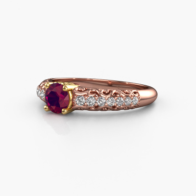 Dieser Verlobungsring aus 14 Karat Roségold mit 5 mm Rhodolit heißt Mellie. Was macht Ihre Beziehung einzigartig? Was hat sie an sich, was Sie dazu bringt, auf die Knie zu fallen? Die einzigartige Verbindung zwischen Ihnen beiden wird durch einen ebenso einzigartigen Ring unterstrichen. Ein einzigartiger Pavé Solitär Verlobungsring, der nur für sie gemacht wurde. Deshalb passt dieser Ring wie angegossen. Jedes einzelne Detail dieses Filigrane, Roségold Rhodolit Verlobungsring wird von unserem erfahrenen Goldschmieden in unserem eigenen Studio von Hand ausgesucht, bearbeitet und poliert. Das Endprodukt ist ein exquisiter Ring, einzigartig und bis zur Perfektion gebracht. Danach streben unsere erfahrenen Juweliere. Jedes Schmuckstück wird hergestellt von einem Team leidenschaftlicher Goldschmiede und Schmuckdesigner. Das wird Ihr Kronjuwel unbedingt zu einem Blickfang machen.Haben Sie ein bestimmtes Budget? Sie können uns gerne kontaktieren, damit wir Ihre Optionen besprechen können. Wir bieten unsere Verlobungsringe zum garantiert besten Preis, denn wir fertigen sie auf Bestellung. Solche Preise finden Sie nirgendwo anders!Haben Sie irgendwo einen bestimmten Verlobungsring gefunden, den Sie Ihrem Liebsten schenken möchten? Sie können uns gerne sagen, was Sie wollen und wir werden Ihr Design in einen Einzigartigen Vintage Verlobungsring verwandeln. Sie können die Entwicklungen Ihres Ringdesigns verfolgen, da wir 3D-Zeichnungen verwenden. Das gibt Ihnen eine realistische Vorschau, wie Ihr Design aussehen wird. Sie können auch einen Dummy vorbestellen. Ein Dummy ist ein Kunststoffring, der nach Ihrem Ringdesign gestaltet werden kann. Sie können ihn anprobieren und prüfen, ob seine Breite und Größe für Sie geeignet sind. Wir senden Ihnen gerne ein unverbindliches Angebot zu einem fairen Preis/Leistungsverhältnis. Sie werden in Anbetracht der Qualität des Rings und der Edelsteine überrascht sein.Um es einfacher zu machen, bieten wir eine kostenlose 30-tägige Rücksendung.
