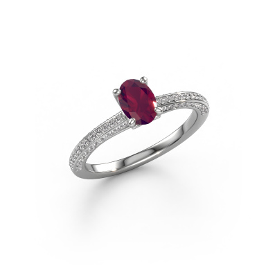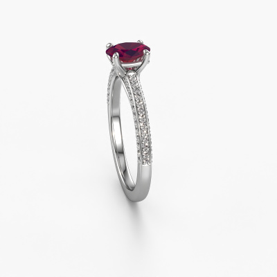 Der oben gezeigte Ring wird Elenore ovl genannt. Es ist ein Pavé Solitär Ring, da er einen zentralen Edelstein und ein Band mit Pavé-Fassung hat. Dieser 14 Karat Weißgold ring ist mit einem 6.5x4.5 mm oval Rhodolit-Mittelstein besetzt und das Band hat eine Pavé-Fassung mit Diamanten. Jedes Schmuckstück wird hergestellt von einem Team leidenschaftlicher Goldschmiede und Schmuckdesigner. Das wird Ihr Kronjuwel unbedingt zu einem Blickfang machen.Dieser exklusive Weißgold Pavé Solitär Verlobungsring mit Pavé-Fassung hat einen exquisiten, oval Rhodolit als Mittelstein. Um den zentralen Stein noch mehr zu betonen, hat das Band eine Pavé-Fassung mit weiteren Diamanten. Durch die offenen Krappen kann das Licht aus mehreren Winkeln auf den Rhodolit treffen und der Rhodolit-Ring funkelt noch mehr. Das obere Foto zeigt die leidenschaftlich handgefertigten Details des Rings. Die hohe Positionierung der Mittelstein ist ein echter Blickfang. Der perfekte Verlobungsring für das Kronjuwel Ihres Lebens!Nachdem Sie Ihre Bestellung aufgegeben haben, beginnen unsere Goldschmiede mit dem kreativen Prozess der Herstellung Ihres Elenore ovl Verlobungsring. Wir haben keine Lager. Das ist vorteilhaft, da diese Kosten nicht an Sie weitergegeben werden. Daher sind wir in der Lage, Schmuck zu außergewöhnlich niedrigen Preisen anzubieten.Haben Sie irgendwo einen bestimmten Verlobungsring gefunden, den Sie Ihrem Liebsten schenken möchten? Sie können uns gerne sagen, was Sie wollen und wir werden Ihr Design in einen Einzigartigen exklusive Verlobungsring verwandeln. Sie können die Entwicklungen Ihres Ringdesigns verfolgen, da wir 3D-Zeichnungen verwenden. Das gibt Ihnen eine realistische Vorschau, wie Ihr Design aussehen wird. Sie können auch einen Dummy vorbestellen. Ein Dummy ist ein Kunststoffring, der nach Ihrem Ringdesign gestaltet werden kann. Sie können ihn anprobieren und prüfen, ob seine Breite und Größe für Sie geeignet sind. Wir senden Ihnen gerne ein unverbindliches Angebot zu einem fairen Preis/Leistungsverhältnis. Sie werden in Anbetracht der Qualität des Rings und der Edelsteine überrascht sein.Um es einfacher zu machen, bieten wir eine kostenlose 30-tägige Rücksendung.