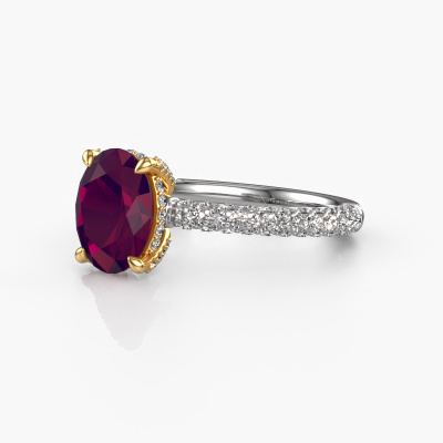 Der oben gezeigte Weißgold Verlobungsring wird Saskia 2 ovl genannt. Es ist ein Pavé Solitär Ring, da er einen zentralen Edelstein und ein Band mit Pavé-Fassung hat. Der exklusive Pavé Solitär Verlobungsring ist in der Kombination 14 Karat Weißgold mit Gold und ist mit einem oval 9x7 mm Rhodolit-Mittelstein besetzt und das Band hat eine Pavé-Fassung mit Lab grown Diamant. Jedes Schmuckstück wird von unseren Meister-Goldschmieden in unserem eigenen Studio für Sie gefertigt. Um den zentralen Stein noch mehr zu betonen, hat das Band eine Pavé-Fassung mit weiteren Rhodolit. Durch die offenen Krappen kann das Licht aus mehreren Winkeln auf den Rhodolit treffen und der Rhodolit-Ring funkelt noch mehr. Das obere Foto zeigt die leidenschaftlich handgefertigten Details des Rings. Die hohe Positionierung der Mittelstein ist ein echter Blickfang. Der perfekte Verlobungsring für das Kronjuwel Ihres Lebens!Nach Erhalt Ihrer Bestellung beginnen unsere Goldschmiede mit Leidenschaft den kreativen Prozess und fertigen Ihren Verlobungsring in unserem eigenen Studio. Da wir keine großen Lager haben, werden diese Kosten nicht an Sie weitergegeben. Unsere Preisgestaltung ist der Beweis dafür! Wir bieten Schmuck zum niedrigsten Preis, garantiert.Haben Sie irgendwo einen bestimmten Verlobungsring gefunden, den Sie Ihrem Liebsten schenken möchten? Sie können uns gerne sagen, was Sie wollen und wir werden Ihr Design in einen Einzigartigen exklusive Verlobungsring verwandeln. Sie können die Entwicklungen Ihres Ringdesigns verfolgen, da wir 3D-Zeichnungen verwenden. Das gibt Ihnen eine realistische Vorschau, wie Ihr Design aussehen wird. Sie können auch einen Dummy vorbestellen. Ein Dummy ist ein Kunststoffring, der nach Ihrem Ringdesign gestaltet werden kann. Sie können ihn anprobieren und prüfen, ob seine Breite und Größe für Sie geeignet sind. Wir senden Ihnen gerne ein unverbindliches Angebot zu einem fairen Preis/Leistungsverhältnis. Sie werden in Anbetracht der Qualität des Rings und der Edelsteine überrascht sein.Um es einfacher zu machen, bieten wir eine kostenlose 30-tägige Rücksendung.