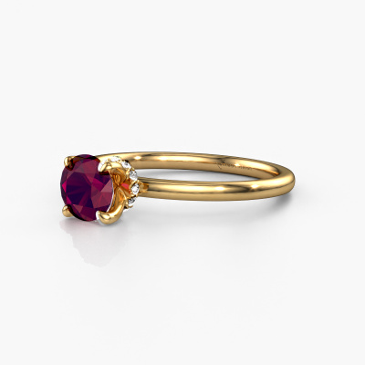 Der oben gezeigte Verlobungsring wird Crystal RND 3 genannt. Wir nennen das einen Solitär-Ring, denn er hat einen einzelnen Edelstein. Es ist ein 14 Karat Gold ring, mit 5.5 mm rund Rhodolit. Das Besondere an unserem Konfigurator ist dass Sie selbst einem Schmuckstück zusammenstellen können zu einem eigenen persönlichen Schmuckstück. Dieser Solitäre Verlobungsring ist gefertigt in der Edelmetall Kombination Gold mit Gold, aber Sie können also auch wählen aus anderen Farben. Jedes Schmuckstück wird hergestellt mit Leidenschaft und Liebe, von einem unserer Meister-Goldschmiede. Der Solitär-Verlobungsring ist eine Sonderform des Verlobungsring. Seine offenen Krappen ermöglichen, dass Licht aus mehr Winkeln auf den Edelstein trifft. Dieser klassische Verlobungsring ist durch die hohe Positionierung des Edelsteins ein atemberaubender Blickfang. Wir schmücken diesen Solitär-Ring sorgfältig von Hand, damit Sie Ihren Anfrage mit einem einzigartigen Ring würdigen können. Die Liebe Ihres Lebens verdient nur das Beste. Durch die Kombination modernster Technik mit uralter Handwerkskunst können wir alle Verlobungsringe in unserem eigenen Studio anfertigen. Jedes Schmuckstück wird auf Anfrage gefertigt. Das ist vorteilhaft, weil wir Ihnen dadurch einen Preis anbieten können, den Sie nirgendwo anders finden.Verschiedene Arten von neuen Ringen werden täglich von unserem Team angefertigt. Vielleicht haben Sie irgendwo einen Solitär Verlobungsring gefunden. Einen, den Sie Ihrem Liebsten schenken möchten. Bitte zögern Sie nicht, unseren Schmuckdesignern Ihre Gedanken und Ihr Design zu zeigen. Wir würden gerne Ihr Design in einen klassische Verlobungsring verwandeln. Sie können die Entwicklungen Ihres Ringdesigns verfolgen, da wir sehr detaillierte 3D-Zeichnungen verwenden. Darüber hinaus können Sie einen Dummy des Designs bestellen. Ein Dummy ist ein Kunststoffring, der nach Ihrem Ringdesign gestaltet werden kann. Sie können ihn anprobieren und prüfen, ob der Verlobungsring Ihren Vorstellungen entspricht. Wir senden Ihnen gerne ein unverbindliches Angebot zu einem fairen Preis/Leistungsverhältnis. Das Angebot wird Sie angesichts der Qualität des Rings und der Edelsteine verblüffen.Um es einfacher zu machen, bieten wir eine kostenlose 30-tägige Rücksendung.