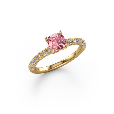 Der oben gezeigte Ring wird Elenore cus genannt. Es ist ein Pavé Solitär Ring, da er einen zentralen Edelstein und ein Band mit Pavé-Fassung hat. Dieser 14 Karat Gold ring ist mit einem 5.5 mm cussion rosa Labordiamant-Mittelstein besetzt und das Band hat eine Pavé-Fassung mit Lab grown Diamant. Jedes Schmuckstück wird hergestellt von einem Team leidenschaftlicher Goldschmiede und Schmuckdesigner. Das wird Ihr Kronjuwel unbedingt zu einem Blickfang machen.Dieser moderne Gold Pavé Solitär Verlobungsring mit Pavé-Fassung hat einen exquisiten, cussion rosa Labordiamant als Mittelstein. Um den zentralen Stein noch mehr zu betonen, hat das Band eine Pavé-Fassung mit weiteren Lab grown Diamant. Durch die offenen Krappen kann das Licht aus mehreren Winkeln auf den rosa Labordiamant treffen und der rosa Labordiamant-Ring funkelt noch mehr. Das obere Foto zeigt die leidenschaftlich handgefertigten Details des Rings. Die hohe Positionierung der Mittelstein ist ein echter Blickfang. Der perfekte Verlobungsring für das Kronjuwel Ihres Lebens!Nachdem Sie Ihre Bestellung aufgegeben haben, beginnen unsere Goldschmiede mit dem kreativen Prozess der Herstellung Ihres Elenore cus Verlobungsring. Wir haben keine Lager. Das ist vorteilhaft, da diese Kosten nicht an Sie weitergegeben werden. Daher sind wir in der Lage, Schmuck zu außergewöhnlich niedrigen Preisen anzubieten.Haben Sie irgendwo einen bestimmten Verlobungsring gefunden, den Sie Ihrem Liebsten schenken möchten? Sie können uns gerne sagen, was Sie wollen und wir werden Ihr Design in einen Einzigartigen moderne Verlobungsring verwandeln. Sie können die Entwicklungen Ihres Ringdesigns verfolgen, da wir 3D-Zeichnungen verwenden. Das gibt Ihnen eine realistische Vorschau, wie Ihr Design aussehen wird. Sie können auch einen Dummy vorbestellen. Ein Dummy ist ein Kunststoffring, der nach Ihrem Ringdesign gestaltet werden kann. Sie können ihn anprobieren und prüfen, ob seine Breite und Größe für Sie geeignet sind. Wir senden Ihnen gerne ein unverbindliches Angebot zu einem fairen Preis/Leistungsverhältnis. Sie werden in Anbetracht der Qualität des Rings und der Edelsteine überrascht sein.Um es einfacher zu machen, bieten wir eine kostenlose 30-tägige Rücksendung.