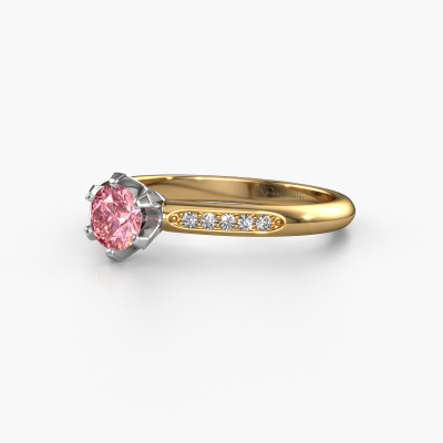 Der oben gezeigte Ring wird Tiffy 2 genannt. Es ist ein Pavé Solitär Ring, da er einen zentralen Edelstein und ein Band mit Pavé-Fassung hat. Dieser 14 Karat Gold ring ist mit einem 4.7 mm rund rosa Labordiamant-Mittelstein besetzt und das Band hat eine Pavé-Fassung mit Diamanten. Jedes Schmuckstück ist um Ihrem Finger Glanz zu verleihen. Jeder Ring wird von unseren Goldschmieden liebevoll von Hand gefertigt.Dieser traditionell Gold Pavé Solitär Verlobungsring mit Pavé-Fassung hat einen exquisiten, rund rosa Labordiamant als Mittelstein. Um den zentralen Stein noch mehr zu betonen, hat das Band eine Pavé-Fassung mit weiteren Diamanten. Durch die offenen Krappen kann das Licht aus mehreren Winkeln auf den rosa Labordiamant treffen und der rosa Labordiamant-Ring funkelt noch mehr. Das obere Foto zeigt die leidenschaftlich handgefertigten Details des Rings. Die hohe Positionierung der Mittelstein ist ein echter Blickfang. Der perfekte Verlobungsring für das Kronjuwel Ihres Lebens!Mit unserer modernen Technik können wir Schmuckstücke von höchster Qualität mit größter Sorgfalt für Sie entwerfen und anpassen. Unsere Verlobungsringe sind immer um 30 Prozent günstiger als bei anderen Juwelieren. Wir fertigen Verlobungsringe auf Bestellung, also müssen wir keine großen Lager unterhalten. Wenn Sie ein bestimmtes Budget haben, beraten wir Sie gerne entsprechend.Unsere Designer und Goldschmiede arbeiten jeden Tag zusammen und versuchen, neue Schmuckstücke zu kreieren. Vielleicht haben Sie irgendwo einen schönen, traditionell Verlobungsring gefunden, nach dem Ihr einzigartiger Ring gestaltet werden kann. Setzen Sie sich mit uns in Verbindung. Wir machen Ihnen ein Angebot, basierend auf einem fairen Preis/Leistungsverhältnis, das Sie begeistern wird.Um es einfacher zu machen, bieten wir eine kostenlose 30-tägige Rücksendung.
