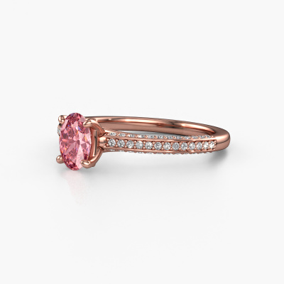 Der oben gezeigte Ring wird Elenore ovl genannt. Es ist ein Pavé Solitär Ring, da er einen zentralen Edelstein und ein Band mit Pavé-Fassung hat. Dieser 14 Karat Roségold ring ist mit einem 6.5x4.5 mm oval rosa Labordiamant-Mittelstein besetzt und das Band hat eine Pavé-Fassung mit Diamanten. Jedes Schmuckstück wird hergestellt von einem Team leidenschaftlicher Goldschmiede und Schmuckdesigner. Das wird Ihr Kronjuwel unbedingt zu einem Blickfang machen.Dieser exklusive Roségold Pavé Solitär Verlobungsring mit Pavé-Fassung hat einen exquisiten, oval rosa Labordiamant als Mittelstein. Um den zentralen Stein noch mehr zu betonen, hat das Band eine Pavé-Fassung mit weiteren Diamanten. Durch die offenen Krappen kann das Licht aus mehreren Winkeln auf den rosa Labordiamant treffen und der rosa Labordiamant-Ring funkelt noch mehr. Das obere Foto zeigt die leidenschaftlich handgefertigten Details des Rings. Die hohe Positionierung der Mittelstein ist ein echter Blickfang. Der perfekte Verlobungsring für das Kronjuwel Ihres Lebens!Nachdem Sie Ihre Bestellung aufgegeben haben, beginnen unsere Goldschmiede mit dem kreativen Prozess der Herstellung Ihres Elenore ovl Verlobungsring. Wir haben keine Lager. Das ist vorteilhaft, da diese Kosten nicht an Sie weitergegeben werden. Daher sind wir in der Lage, Schmuck zu außergewöhnlich niedrigen Preisen anzubieten.Haben Sie irgendwo einen bestimmten Verlobungsring gefunden, den Sie Ihrem Liebsten schenken möchten? Sie können uns gerne sagen, was Sie wollen und wir werden Ihr Design in einen Einzigartigen exklusive Verlobungsring verwandeln. Sie können die Entwicklungen Ihres Ringdesigns verfolgen, da wir 3D-Zeichnungen verwenden. Das gibt Ihnen eine realistische Vorschau, wie Ihr Design aussehen wird. Sie können auch einen Dummy vorbestellen. Ein Dummy ist ein Kunststoffring, der nach Ihrem Ringdesign gestaltet werden kann. Sie können ihn anprobieren und prüfen, ob seine Breite und Größe für Sie geeignet sind. Wir senden Ihnen gerne ein unverbindliches Angebot zu einem fairen Preis/Leistungsverhältnis. Sie werden in Anbetracht der Qualität des Rings und der Edelsteine überrascht sein.Um es einfacher zu machen, bieten wir eine kostenlose 30-tägige Rücksendung.