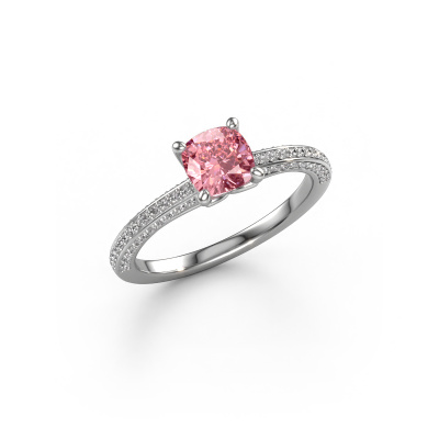 Der oben gezeigte Ring wird Elenore cus genannt. Es ist ein Pavé Solitär Ring, da er einen zentralen Edelstein und ein Band mit Pavé-Fassung hat. Dieser 14 Karat Weißgold ring ist mit einem 5.5 mm cussion rosa Labordiamant-Mittelstein besetzt und das Band hat eine Pavé-Fassung mit Lab grown Diamant. Jedes Schmuckstück wird hergestellt von einem Team leidenschaftlicher Goldschmiede und Schmuckdesigner. Das wird Ihr Kronjuwel unbedingt zu einem Blickfang machen.Dieser moderne Weißgold Pavé Solitär Verlobungsring mit Pavé-Fassung hat einen exquisiten, cussion rosa Labordiamant als Mittelstein. Um den zentralen Stein noch mehr zu betonen, hat das Band eine Pavé-Fassung mit weiteren Lab grown Diamant. Durch die offenen Krappen kann das Licht aus mehreren Winkeln auf den rosa Labordiamant treffen und der rosa Labordiamant-Ring funkelt noch mehr. Das obere Foto zeigt die leidenschaftlich handgefertigten Details des Rings. Die hohe Positionierung der Mittelstein ist ein echter Blickfang. Der perfekte Verlobungsring für das Kronjuwel Ihres Lebens!Nachdem Sie Ihre Bestellung aufgegeben haben, beginnen unsere Goldschmiede mit dem kreativen Prozess der Herstellung Ihres Elenore cus Verlobungsring. Wir haben keine Lager. Das ist vorteilhaft, da diese Kosten nicht an Sie weitergegeben werden. Daher sind wir in der Lage, Schmuck zu außergewöhnlich niedrigen Preisen anzubieten.Haben Sie irgendwo einen bestimmten Verlobungsring gefunden, den Sie Ihrem Liebsten schenken möchten? Sie können uns gerne sagen, was Sie wollen und wir werden Ihr Design in einen Einzigartigen moderne Verlobungsring verwandeln. Sie können die Entwicklungen Ihres Ringdesigns verfolgen, da wir 3D-Zeichnungen verwenden. Das gibt Ihnen eine realistische Vorschau, wie Ihr Design aussehen wird. Sie können auch einen Dummy vorbestellen. Ein Dummy ist ein Kunststoffring, der nach Ihrem Ringdesign gestaltet werden kann. Sie können ihn anprobieren und prüfen, ob seine Breite und Größe für Sie geeignet sind. Wir senden Ihnen gerne ein unverbindliches Angebot zu einem fairen Preis/Leistungsverhältnis. Sie werden in Anbetracht der Qualität des Rings und der Edelsteine überrascht sein.Um es einfacher zu machen, bieten wir eine kostenlose 30-tägige Rücksendung.