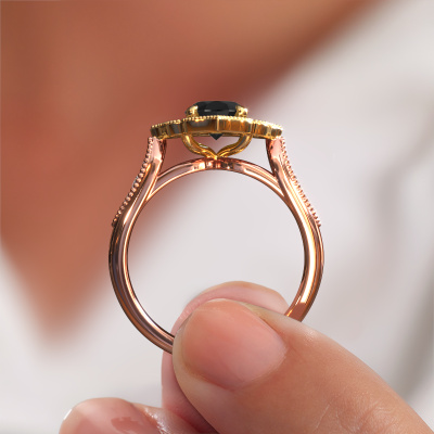 Dieser Verlobungsring aus 14 Karat Roségold heißt Rosan und hat einen Schwarz Diamant Edelstein. Ein außergewöhnlicher, Roségold Vintage Ring. Einer, der die Liebe Ihres Lebens mit Sicherheit wie ein Schwarz Diamant erstrahlen lässt! Das hoffen wir zu erreichen. Dieser Vintage Verlobungsring ist mit exquisiten Schwarze Diamanten besetzt. Welchen Edelstein Sie aus unserer Auswahl haben möchten, liegt ganz bei Ihnen. Der Edelstein wird mit großer Sorgfalt ausgewählt. Denn wir glauben, dass Ihr Verlobungsring nur mit dem schönsten Edelstein gekrönt sein darf. Sehen Sie das auch so? Unser erfahrener Juwelier entwirft Ihren Ring in unserem eigenen Studio, wo der Schwarz Diamant mit großer Präzision eingefasst wird. Der Ring wird dann bearbeitet und poliert, bis er perfekt ist. Nichts als das Beste für die Liebe Ihres Lebens! Jedes Schmuckstück wird von unseren Meister-Goldschmieden in unserem eigenen Studio für Sie gefertigt.Nach Erhalt Ihrer Bestellung beginnen unsere Goldschmiede mit Leidenschaft den kreativen Prozess und fertigen Ihren Verlobungsring in unserem eigenen Studio. Da wir keine großen Lager haben, werden diese Kosten nicht an Sie weitergegeben. Unsere Preisgestaltung ist der Beweis dafür! Wir bieten Schmuck zum niedrigsten Preis, garantiert.Unser Team fügt unserer Online-Kollektion täglich neue Designs hinzu. Unsere Designer und Goldschmiede arbeiten zusammen, um das beste Design zu kreieren. Wir bemühen uns, eine vielfältige Kollektion von Schmuckstücken anzubieten. Vielleicht haben Sie ein bestimmtes Design im Sinn. Eines, dass Sie irgendwo gesehen haben. Gerne geben wir Ihnen eine kostenlose Beratung. Wir machen Ihnen ein Angebot, basierend auf einem fairen Preis/Leistungsverhältnis, das Sie verblüffen wird.Um es einfacher zu machen, bieten wir eine kostenlose 30-tägige Rücksendung.