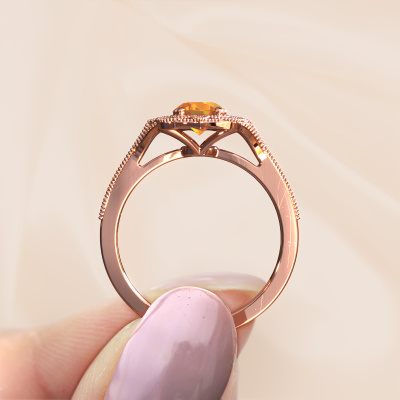 Dieser Verlobungsring aus 14 Karat Roségold heißt Loni. Dieser filigrane Roségold Verlobungsring mit 7,5x5,5 mm Citrin ist ein wahres Kunstwerk! Ein wunderschön geschmücktes Design aus komplizierten Drähten. Mit Hingabe, Geduld und äußerster Präzision werden unsere erfahrenen Juweliere einen Ring nur für Sie entwerfen. Die Verzierungen mit kleinen Drähten werden von Hand in Perfektion gefertigt. Das ist ein langwieriger Prozess, der Schweißen, Werkzeug und Polieren umfasst, bis der erfahrene Juwelier mit dem Ergebnis zufrieden ist: Ein perfekter, auffälliger Ring, der ihn mit Freude zum Strahlen bringt. Deshalb ist der Vintage, filigrane Verlobungsring ein außergewöhnliches Geschenk, um die Liebe Ihres Lebens zu verwöhnen. Ein handgemachter, einzigartiger und personalisierter Ring, den man jemandem in diesem besonderen Moment geben kann, wenn man die eine Frage stellt. Ist das nicht wunderbar? Jedes Schmuckstück wird hergestellt mit Leidenschaft und Liebe, von einem unserer Meister-Goldschmiede.Da wir unsere eigenen Ringe entwerfen und liefern, können wir Ihnen einen Verlobungsring zu einem Preis anbieten, den Sie nirgendwo anders finden. Ein Ring wird auf Bestellung angefertigt, wodurch kein überschüssiges Material anfällt. So können wir Ihnen ein gutes Angebot zum besten Preis machen. Wir verstehen, dass es sich riskant anfühlt, Ihren Verlobungsring online zu kaufen. Jedoch helfen wir Ihnen gerne beim Designprozess unter Berücksichtigung Ihres Budgets.Unser Team fügt unserer Online-Kollektion täglich neue Designs hinzu. Unsere Designer und Goldschmiede arbeiten zusammen, um das beste Design zu kreieren. Wir bemühen uns, eine vielfältige Kollektion von Schmuckstücken anzubieten. Vielleicht haben Sie ein bestimmtes Design im Sinn. Eines, dass Sie irgendwo gesehen haben. Gerne geben wir Ihnen eine kostenlose Beratung. Wir machen Ihnen ein Angebot, basierend auf einem fairen Preis/Leistungsverhältnis, das Sie verblüffen wird.Um es einfacher zu machen, bieten wir eine kostenlose 30-tägige Rücksendung.