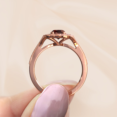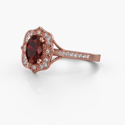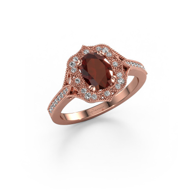 Dieser Verlobungsring aus 14 Karat Roségold heißt Loni. Dieser filigrane Roségold Verlobungsring mit 7,5x5,5 mm Granat ist ein wahres Kunstwerk! Ein wunderschön geschmücktes Design aus komplizierten Drähten. Mit Hingabe, Geduld und äußerster Präzision werden unsere erfahrenen Juweliere einen Ring nur für Sie entwerfen. Die Verzierungen mit kleinen Drähten werden von Hand in Perfektion gefertigt. Das ist ein langwieriger Prozess, der Schweißen, Werkzeug und Polieren umfasst, bis der erfahrene Juwelier mit dem Ergebnis zufrieden ist: Ein perfekter, auffälliger Ring, der ihn mit Freude zum Strahlen bringt. Deshalb ist der Vintage, filigrane Verlobungsring ein außergewöhnliches Geschenk, um die Liebe Ihres Lebens zu verwöhnen. Ein handgemachter, einzigartiger und personalisierter Ring, den man jemandem in diesem besonderen Moment geben kann, wenn man die eine Frage stellt. Ist das nicht wunderbar? Jedes Schmuckstück wird hergestellt mit Leidenschaft und Liebe, von einem unserer Meister-Goldschmiede.Da wir unsere eigenen Ringe entwerfen und liefern, können wir Ihnen einen Verlobungsring zu einem Preis anbieten, den Sie nirgendwo anders finden. Ein Ring wird auf Bestellung angefertigt, wodurch kein überschüssiges Material anfällt. So können wir Ihnen ein gutes Angebot zum besten Preis machen. Wir verstehen, dass es sich riskant anfühlt, Ihren Verlobungsring online zu kaufen. Jedoch helfen wir Ihnen gerne beim Designprozess unter Berücksichtigung Ihres Budgets.Unser Team fügt unserer Online-Kollektion täglich neue Designs hinzu. Unsere Designer und Goldschmiede arbeiten zusammen, um das beste Design zu kreieren. Wir bemühen uns, eine vielfältige Kollektion von Schmuckstücken anzubieten. Vielleicht haben Sie ein bestimmtes Design im Sinn. Eines, dass Sie irgendwo gesehen haben. Gerne geben wir Ihnen eine kostenlose Beratung. Wir machen Ihnen ein Angebot, basierend auf einem fairen Preis/Leistungsverhältnis, das Sie verblüffen wird.Um es einfacher zu machen, bieten wir eine kostenlose 30-tägige Rücksendung.