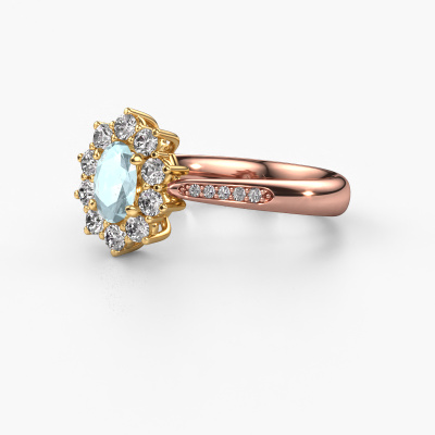 Der oben gezeigte Ring wird Leesa 2 genannt. Ein Cluster Ring mit einem zentralen Edelstein, umgeben von kleineren Steinen, wir nennen das einen Cluster Ring. Diese Version in 14 Karat Roségold hat einen 6x4 mm oval Aquamarin als Mittelstein, umschlossen von kleineren Diamanten. Der klassische, Roségold Cluster Verlobungsring zeichnet sich durch seine Form aus. Zusammen bilden die kleineren und größeren Aquamarin eine Blume und scheinen zu einem großen, funkelnden Edelstein zu verschmelzen. Dieser klassische Verlobungsring wird auch als Blumen- oder Rosettenring bezeichnet. Unsere erfahrenen Juweliere stellen sicher, dass die kleineren Diamanten identisch gesetzt sind, so dass es an dem Aquamarin keine Lichtstörungen gibt, sondern sie stattdessen eine Einheit bilden. Mit perfekter Präzision und geschickter Hand wird jeder Aquamarin in den Ring gesetzt. Während der Herstellung wird alles ständig überwacht, um sicherzustellen, dass das Licht einwandfrei reflektiert wird. Das alles führt zu einem einzigartigen Verlobungsring mit einem strahlenden Aquamarins in seiner Mitte. Ein schönes, bedeutungsvolles Geschenk, um es der Liebe Ihres Lebens zu schenken. Haben Sie ein bestimmtes Budget? Sie können uns gerne kontaktieren, damit wir Ihre Optionen besprechen können. Wir bieten unsere Verlobungsringe zum garantiert besten Preis, denn wir fertigen sie auf Bestellung. Solche Preise finden Sie nirgendwo anders!Unsere Designer und Goldschmiede arbeiten jeden Tag zusammen und versuchen, neue Schmuckstücke zu kreieren. Vielleicht haben Sie irgendwo einen schönen, klassische Verlobungsring gefunden, nach dem Ihr einzigartiger Ring gestaltet werden kann. Setzen Sie sich mit uns in Verbindung. Wir machen Ihnen ein Angebot, basierend auf einem fairen Preis/Leistungsverhältnis, das Sie begeistern wird.Um es einfacher zu machen, bieten wir eine kostenlose 30-tägige Rücksendung.