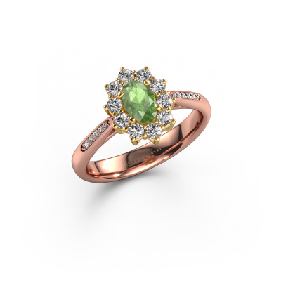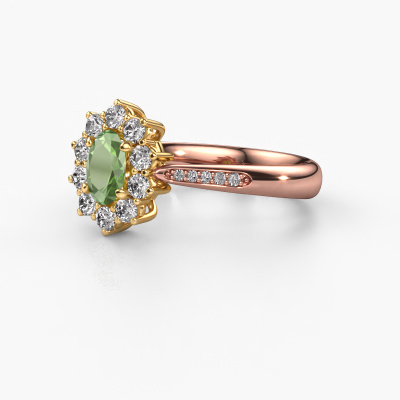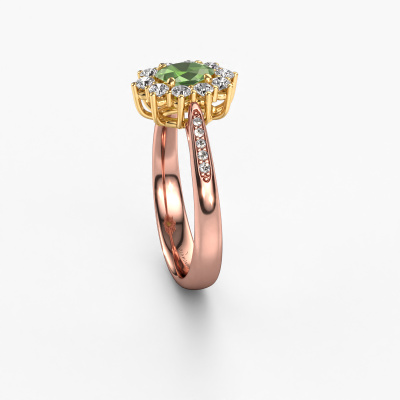Der oben gezeigte Ring wird Leesa 2 genannt. Ein Cluster Ring mit einem zentralen Edelstein, umgeben von kleineren Steinen, wir nennen das einen Cluster Ring. Diese Version in 14 Karat Roségold hat einen 6x4 mm oval Turmalin grün als Mittelstein, umschlossen von kleineren Diamanten. Der klassische, Roségold Cluster Verlobungsring zeichnet sich durch seine Form aus. Zusammen bilden die kleineren und größeren Turmalin grün eine Blume und scheinen zu einem großen, funkelnden Edelstein zu verschmelzen. Dieser klassische Verlobungsring wird auch als Blumen- oder Rosettenring bezeichnet. Unsere erfahrenen Juweliere stellen sicher, dass die kleineren Diamanten identisch gesetzt sind, so dass es an dem Turmalin grün keine Lichtstörungen gibt, sondern sie stattdessen eine Einheit bilden. Mit perfekter Präzision und geschickter Hand wird jeder Turmalin grün in den Ring gesetzt. Während der Herstellung wird alles ständig überwacht, um sicherzustellen, dass das Licht einwandfrei reflektiert wird. Das alles führt zu einem einzigartigen Verlobungsring mit einem strahlenden grüner Turmalin in seiner Mitte. Ein schönes, bedeutungsvolles Geschenk, um es der Liebe Ihres Lebens zu schenken. Haben Sie ein bestimmtes Budget? Sie können uns gerne kontaktieren, damit wir Ihre Optionen besprechen können. Wir bieten unsere Verlobungsringe zum garantiert besten Preis, denn wir fertigen sie auf Bestellung. Solche Preise finden Sie nirgendwo anders!Unsere Designer und Goldschmiede arbeiten jeden Tag zusammen und versuchen, neue Schmuckstücke zu kreieren. Vielleicht haben Sie irgendwo einen schönen, klassische Verlobungsring gefunden, nach dem Ihr einzigartiger Ring gestaltet werden kann. Setzen Sie sich mit uns in Verbindung. Wir machen Ihnen ein Angebot, basierend auf einem fairen Preis/Leistungsverhältnis, das Sie begeistern wird.Um es einfacher zu machen, bieten wir eine kostenlose 30-tägige Rücksendung.