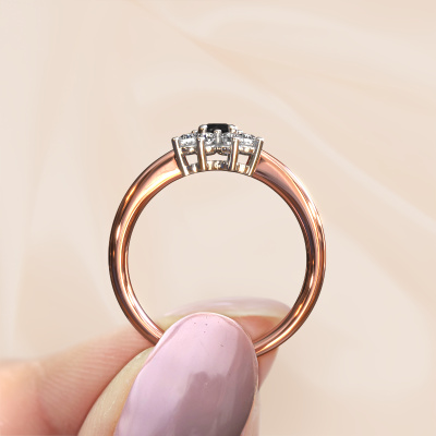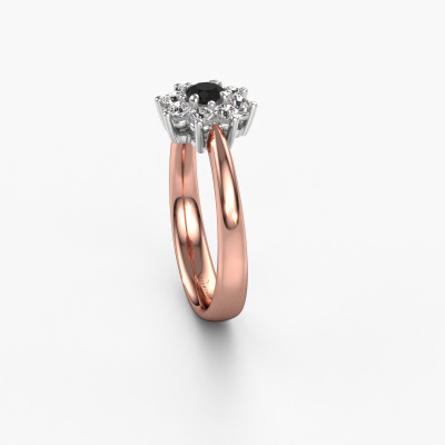 Der oben gezeigte Ring wird Camille 1 genannt. Ein Flower Ring mit einem zentralen Edelstein, umgeben von kleineren Steinen, wir nennen das einen Cluster Ring. Diese Version in 14 Karat Roségold hat einen 0.18 crt rund Schwarz Diamant als Mittelstein, umschlossen von kleineren Diamanten. Der traditionell, Roségold Flower Verlobungsring zeichnet sich durch seine Form aus. Zusammen bilden die kleineren und größeren Schwarz Diamant eine Blume und scheinen zu einem großen, funkelnden Edelstein zu verschmelzen. Dieser traditionell Verlobungsring wird auch als Blumen- oder Rosettenring bezeichnet. Unsere erfahrenen Juweliere stellen sicher, dass die kleineren Diamanten identisch gesetzt sind, so dass es an dem Schwarz Diamant keine Lichtstörungen gibt, sondern sie stattdessen eine Einheit bilden. Mit perfekter Präzision und geschickter Hand wird jeder Schwarz Diamant in den Ring gesetzt. Während der Herstellung wird alles ständig überwacht, um sicherzustellen, dass das Licht einwandfrei reflektiert wird. Das alles führt zu einem einzigartigen Verlobungsring mit einem strahlenden Schwarze Diamanten in seiner Mitte. Ein schönes, bedeutungsvolles Geschenk, um es der Liebe Ihres Lebens zu schenken. Mit unserer modernen Technik können wir Schmuckstücke von höchster Qualität mit größter Sorgfalt für Sie entwerfen und anpassen. Unsere Verlobungsringe sind immer um 30 Prozent günstiger als bei anderen Juwelieren. Wir fertigen Verlobungsringe auf Bestellung, also müssen wir keine großen Lager unterhalten. Wenn Sie ein bestimmtes Budget haben, beraten wir Sie gerne entsprechend.Unser Team fügt unserer Online-Kollektion täglich neue Designs hinzu. Unsere Designer und Goldschmiede arbeiten zusammen, um das beste Design zu kreieren. Wir bemühen uns, eine vielfältige Kollektion von Schmuckstücken anzubieten. Vielleicht haben Sie ein bestimmtes Design im Sinn. Eines, dass Sie irgendwo gesehen haben. Gerne geben wir Ihnen eine kostenlose Beratung. Wir machen Ihnen ein Angebot, basierend auf einem fairen Preis/Leistungsverhältnis, das Sie verblüffen wird.Um es einfacher zu machen, bieten wir eine kostenlose 30-tägige Rücksendung.
