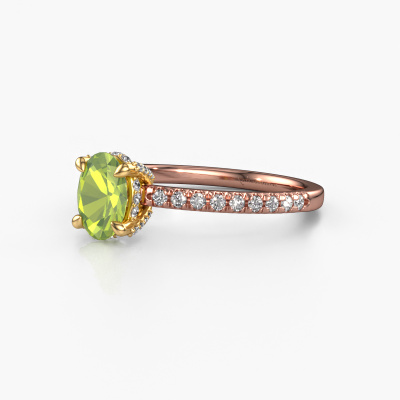 Dieser Verlobungsring aus 14 Karat Roségold mit 7x5 mm Peridot heißt Saskia 1 ovl. Liebt deine Freundin exklusiven Schmuck? Oder möchten Sie ihr zeigen, dass sie den besten Schmuck verdient? Dieser Roségold Ring ist pure Handwerkskunst - Liebe und Leidenschaft kombiniert mit den neuesten Techniken, die in perfekter Harmonie zusammentreffen. Es erfordert ein scharfes Auge, Geduld und eine geschickte Hand, um diesen Ring in Perfektion zu formen. Genau der richtige Job für unsere erfahrenen Juweliere! Die Peridot-Fassung verleiht diesem Roségold gewagte Ring eine extra glänzende Erscheinung. Passen Sie den Stil des Rings nach Ihren Wünschen und mit einer großen Auswahl an Edelmetallen und Edelsteinen an, die Sie selbst auswählen können. So kreieren Sie einen einzigartigen Ring für die exklusivste Frau Ihres Lebens! Jedes Schmuckstück wird hergestellt von einem Team leidenschaftlicher Goldschmiede und Schmuckdesigner. Das wird Ihr Kronjuwel unbedingt zu einem Blickfang machen.Nach Erhalt Ihrer Bestellung beginnen unsere Goldschmiede mit Leidenschaft den kreativen Prozess und fertigen Ihren Verlobungsring in unserem eigenen Studio. Da wir keine großen Lager haben, werden diese Kosten nicht an Sie weitergegeben. Unsere Preisgestaltung ist der Beweis dafür! Wir bieten Schmuck zum niedrigsten Preis, garantiert.Verschiedene Arten von neuen Ringen werden täglich von unserem Team angefertigt. Vielleicht haben Sie irgendwo einen Pavé Solitär Verlobungsring gefunden. Einen, den Sie Ihrem Liebsten schenken möchten. Bitte zögern Sie nicht, unseren Schmuckdesignern Ihre Gedanken und Ihr Design zu zeigen. Wir würden gerne Ihr Design in einen Luxus Verlobungsring verwandeln. Sie können die Entwicklungen Ihres Ringdesigns verfolgen, da wir sehr detaillierte 3D-Zeichnungen verwenden. Darüber hinaus können Sie einen Dummy des Designs bestellen. Ein Dummy ist ein Kunststoffring, der nach Ihrem Ringdesign gestaltet werden kann. Sie können ihn anprobieren und prüfen, ob der Verlobungsring Ihren Vorstellungen entspricht. Wir senden Ihnen gerne ein unverbindliches Angebot zu einem fairen Preis/Leistungsverhältnis. Das Angebot wird Sie angesichts der Qualität des Rings und der Edelsteine verblüffen.Um es einfacher zu machen, bieten wir eine kostenlose 30-tägige Rücksendung.