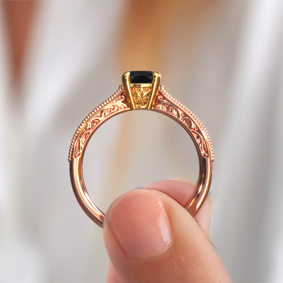 Dieser Verlobungsring aus 14 Karat Roségold heißt Shonta CUS. Dieser filigrane Roségold Verlobungsring mit 1.284 crt Schwarz Diamant ist ein wahres Kunstwerk! Ein wunderschön geschmücktes Design aus komplizierten Drähten. Mit Hingabe, Geduld und äußerster Präzision werden unsere erfahrenen Juweliere einen Ring nur für Sie entwerfen. Die Verzierungen mit kleinen Drähten werden von Hand in Perfektion gefertigt. Das ist ein langwieriger Prozess, der Schweißen, Werkzeug und Polieren umfasst, bis der erfahrene Juwelier mit dem Ergebnis zufrieden ist: Ein perfekter, auffälliger Ring, der ihn mit Freude zum Strahlen bringt. Deshalb ist der Vintage, filigrane Verlobungsring ein außergewöhnliches Geschenk, um die Liebe Ihres Lebens zu verwöhnen. Ein handgemachter, einzigartiger und personalisierter Ring, den man jemandem in diesem besonderen Moment geben kann, wenn man die eine Frage stellt. Ist das nicht wunderbar? Jedes Schmuckstück ist um Ihrem Finger Glanz zu verleihen. Jeder Ring wird von unseren Goldschmieden liebevoll von Hand gefertigt.Nachdem Sie Ihre Bestellung aufgegeben haben, beginnen unsere Goldschmiede mit dem kreativen Prozess der Herstellung Ihres Shonta CUS Verlobungsring. Wir haben keine Lager. Das ist vorteilhaft, da diese Kosten nicht an Sie weitergegeben werden. Daher sind wir in der Lage, Schmuck zu außergewöhnlich niedrigen Preisen anzubieten.Unsere Designer und Goldschmiede arbeiten jeden Tag zusammen und versuchen, neue Schmuckstücke zu kreieren. Vielleicht haben Sie irgendwo einen schönen, Vintage Verlobungsring gefunden, nach dem Ihr einzigartiger Ring gestaltet werden kann. Setzen Sie sich mit uns in Verbindung. Wir machen Ihnen ein Angebot, basierend auf einem fairen Preis/Leistungsverhältnis, das Sie begeistern wird.Um es einfacher zu machen, bieten wir eine kostenlose 30-tägige Rücksendung.