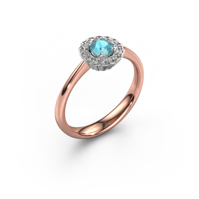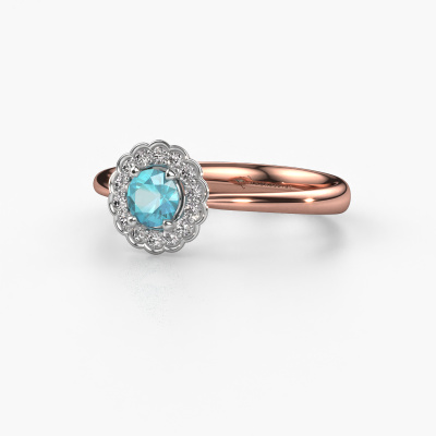 Der oben gezeigte Verlobungsring wird Debi genannt. Es ist ein Halo Ring, da er einen zentralen Edelstein und ein Band mit Pavé-Fassung hat. Der 14 Karat Roségold ring ist mit einem 4.2 mm rund Blau Topas-Mittelstein besetzt und um ihn herum eine Pavé-Fassung mit Diamanten. Was diesen klassische, Roségold Halo Ring besonders macht, sind die kleineren Steine, die den zentralen Stein umschließen. Dieser wunderschöne Verlobungsring wird als Halo Ring bezeichnet, da die kleineren Edelsteine dem zentralen Stein einen Lichthof geben. Damit die kleineren Steine den Mittelstein verstärken, müssen sie so platziert werden, dass keine Lichteinflüsse auftreten. Und hier kommen unsere erfahrenen Goldschmiede ins Spiel. Jeder einzelne Stein wird sorgfältig von Hand in den Ring gesetzt. Während der Herstellung wird der Lichteinfall ständig überprüft. So können wir sicherstellen, dass der spezielle Lichtkranz noch sichtbar ist. Am Ende erhalten Sie einen einzigartigen Verlobungsring mit einem Blaue Topas Ihrer Wahl in der Mitte. Sie können sich die Wirkung eines solchen Ringes vorstellen, wenn Sie ihn an ihrem besonderen Tag für sie zum Leuchten bringen. Da wir unsere eigenen Ringe entwerfen und liefern, können wir Ihnen einen Verlobungsring zu einem Preis anbieten, den Sie nirgendwo anders finden. Ein Ring wird auf Bestellung angefertigt, wodurch kein überschüssiges Material anfällt. So können wir Ihnen ein gutes Angebot zum besten Preis machen. Wir verstehen, dass es sich riskant anfühlt, Ihren Verlobungsring online zu kaufen. Jedoch helfen wir Ihnen gerne beim Designprozess unter Berücksichtigung Ihres Budgets.Unser Team fügt unserer Online-Kollektion täglich neue Designs hinzu. Unsere Designer und Goldschmiede arbeiten zusammen, um das beste Design zu kreieren. Wir bemühen uns, eine vielfältige Kollektion von Schmuckstücken anzubieten. Vielleicht haben Sie ein bestimmtes Design im Sinn. Eines, dass Sie irgendwo gesehen haben. Gerne geben wir Ihnen eine kostenlose Beratung. Wir machen Ihnen ein Angebot, basierend auf einem fairen Preis/Leistungsverhältnis, das Sie verblüffen wird.Um es einfacher zu machen, bieten wir eine kostenlose 30-tägige Rücksendung.