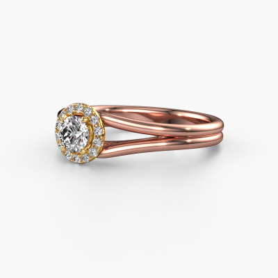 Der oben gezeigte Verlobungsring wird Verla rnd 1 genannt. Es ist ein Halo Ring, da er einen zentralen Edelstein und ein Band mit Pavé-Fassung hat. Der 14 Karat Roségold ring ist mit einem 0.30 crt rund Diamant-Mittelstein besetzt und um ihn herum eine Pavé-Fassung mit Diamanten. Was diesen klassische, Roségold Halo Ring besonders macht, sind die kleineren Steine, die den zentralen Stein umschließen. Dieser wunderschöne Verlobungsring wird als Halo Ring bezeichnet, da die kleineren Edelsteine dem zentralen Stein einen Lichthof geben. Damit die kleineren Steine den Mittelstein verstärken, müssen sie so platziert werden, dass keine Lichteinflüsse auftreten. Und hier kommen unsere erfahrenen Goldschmiede ins Spiel. Jeder einzelne Stein wird sorgfältig von Hand in den Ring gesetzt. Während der Herstellung wird der Lichteinfall ständig überprüft. So können wir sicherstellen, dass der spezielle Lichtkranz noch sichtbar ist. Am Ende erhalten Sie einen einzigartigen Verlobungsring mit einem Diamanten Ihrer Wahl in der Mitte. Sie können sich die Wirkung eines solchen Ringes vorstellen, wenn Sie ihn an ihrem besonderen Tag für sie zum Leuchten bringen. Durch die Kombination modernster Technik mit uralter Handwerkskunst können wir alle Verlobungsringe in unserem eigenen Studio anfertigen. Jedes Schmuckstück wird auf Anfrage gefertigt. Das ist vorteilhaft, weil wir Ihnen dadurch einen Preis anbieten können, den Sie nirgendwo anders finden.Unser Team fügt unserer Online-Kollektion täglich neue Designs hinzu. Unsere Designer und Goldschmiede arbeiten zusammen, um das beste Design zu kreieren. Wir bemühen uns, eine vielfältige Kollektion von Schmuckstücken anzubieten. Vielleicht haben Sie ein bestimmtes Design im Sinn. Eines, dass Sie irgendwo gesehen haben. Gerne geben wir Ihnen eine kostenlose Beratung. Wir machen Ihnen ein Angebot, basierend auf einem fairen Preis/Leistungsverhältnis, das Sie verblüffen wird.Um es einfacher zu machen, bieten wir eine kostenlose 30-tägige Rücksendung.