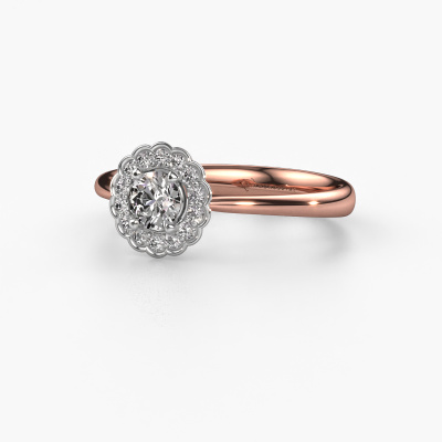 Der oben gezeigte Verlobungsring wird Debi genannt. Es ist ein Halo Ring, da er einen zentralen Edelstein und ein Band mit Pavé-Fassung hat. Der 14 Karat Roségold ring ist mit einem 0.30 crt rund Diamant-Mittelstein besetzt und um ihn herum eine Pavé-Fassung mit Diamanten. Was diesen klassische, Roségold Halo Ring besonders macht, sind die kleineren Steine, die den zentralen Stein umschließen. Dieser wunderschöne Verlobungsring wird als Halo Ring bezeichnet, da die kleineren Edelsteine dem zentralen Stein einen Lichthof geben. Damit die kleineren Steine den Mittelstein verstärken, müssen sie so platziert werden, dass keine Lichteinflüsse auftreten. Und hier kommen unsere erfahrenen Goldschmiede ins Spiel. Jeder einzelne Stein wird sorgfältig von Hand in den Ring gesetzt. Während der Herstellung wird der Lichteinfall ständig überprüft. So können wir sicherstellen, dass der spezielle Lichtkranz noch sichtbar ist. Am Ende erhalten Sie einen einzigartigen Verlobungsring mit einem Diamanten Ihrer Wahl in der Mitte. Sie können sich die Wirkung eines solchen Ringes vorstellen, wenn Sie ihn an ihrem besonderen Tag für sie zum Leuchten bringen. Da wir unsere eigenen Ringe entwerfen und liefern, können wir Ihnen einen Verlobungsring zu einem Preis anbieten, den Sie nirgendwo anders finden. Ein Ring wird auf Bestellung angefertigt, wodurch kein überschüssiges Material anfällt. So können wir Ihnen ein gutes Angebot zum besten Preis machen. Wir verstehen, dass es sich riskant anfühlt, Ihren Verlobungsring online zu kaufen. Jedoch helfen wir Ihnen gerne beim Designprozess unter Berücksichtigung Ihres Budgets.Unser Team fügt unserer Online-Kollektion täglich neue Designs hinzu. Unsere Designer und Goldschmiede arbeiten zusammen, um das beste Design zu kreieren. Wir bemühen uns, eine vielfältige Kollektion von Schmuckstücken anzubieten. Vielleicht haben Sie ein bestimmtes Design im Sinn. Eines, dass Sie irgendwo gesehen haben. Gerne geben wir Ihnen eine kostenlose Beratung. Wir machen Ihnen ein Angebot, basierend auf einem fairen Preis/Leistungsverhältnis, das Sie verblüffen wird.Um es einfacher zu machen, bieten wir eine kostenlose 30-tägige Rücksendung.
